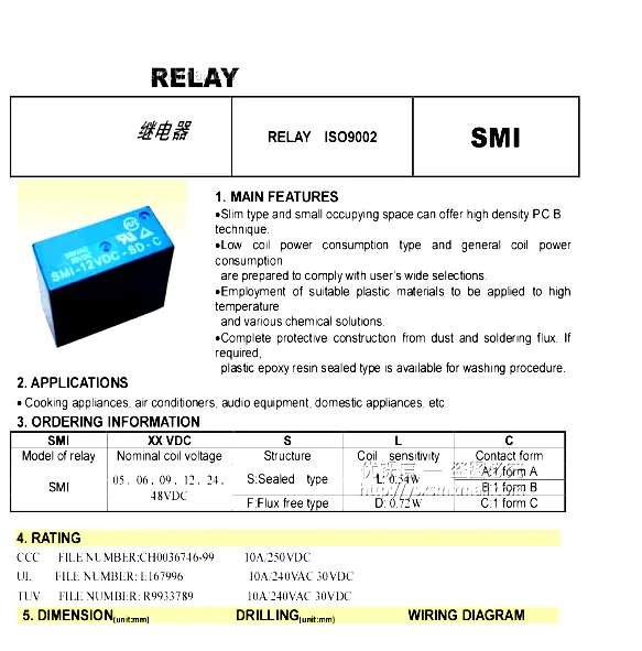2PCS SMI-05VDC-SL-2C SMI-12VDC-SL-2C SMI-24VDC-SL-2C 8pin 5A 250VAC/30VDC 05 12 24 VDC relé de potencia nuevo
