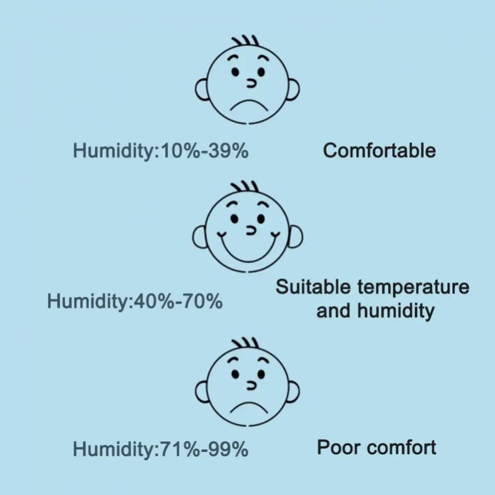 -Indicador de confort de aire: los iconos de nivel indican el confort del aire, ideal para controlar las condiciones de vida y la salud de la familia.