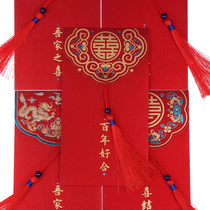 2. Diseño: estampado en caliente de dos colores de alta precisión, diseño elegante y patrones claros. Textura esmerilada, aspecto impresionante. Los sobres rojos no son gruesos en un lote y no tienen rebabas.