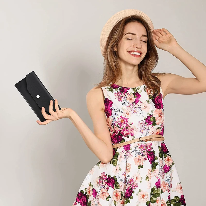 Material de calidad: la cartera de sobres está hecha de cuero de PU, impermeable y no es fácil de rayar, puede proteger bien la seguridad de su dinero; El diseño de la hebilla de metal es conveniente para abrir y cerrar, fácil de usar