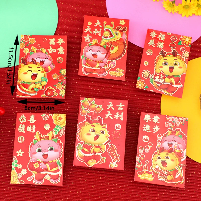 Comprar Sobres Rojos piezas el año de la suerte del dragón, decoración de 8x11,5 cm, 6 unidades