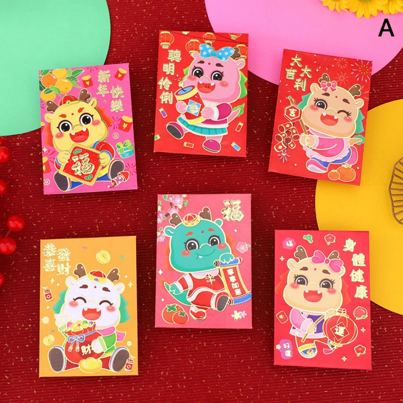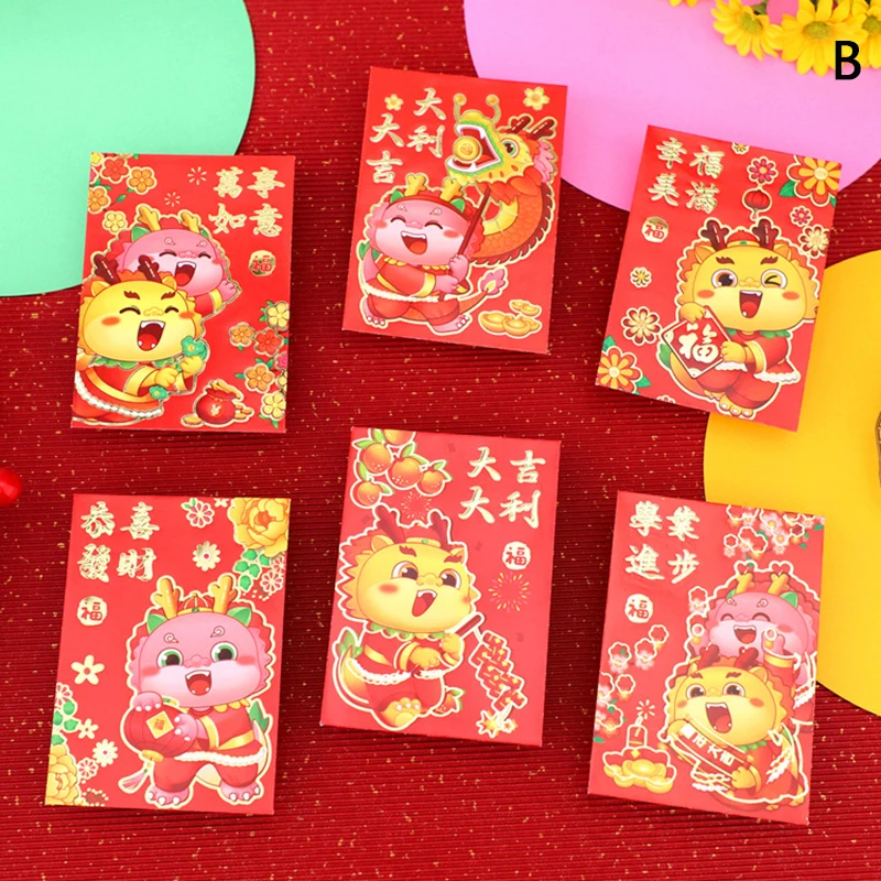 Comprar Sobres Rojos piezas el año de la suerte del dragón, decoración de 8x11,5 cm, 6 unidades