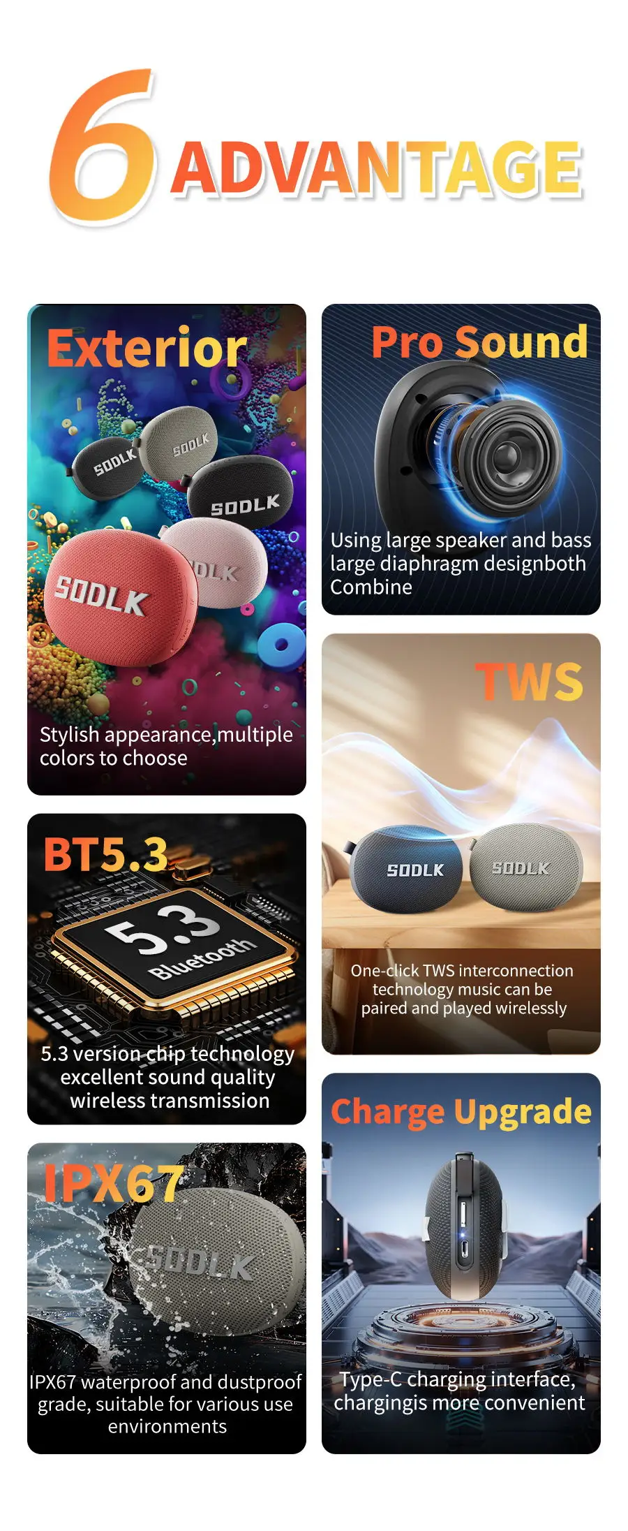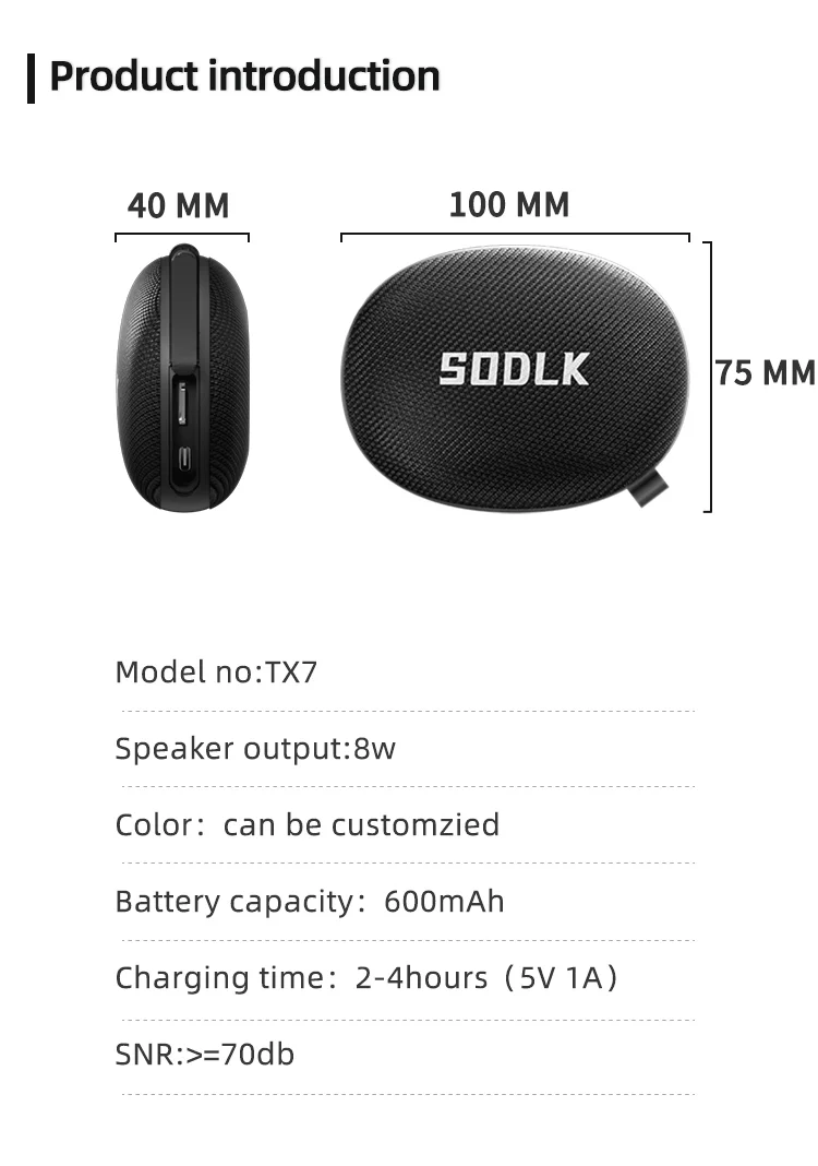 Nombre del producto: SODLK TX7 portátil mini altavoz de diente azul