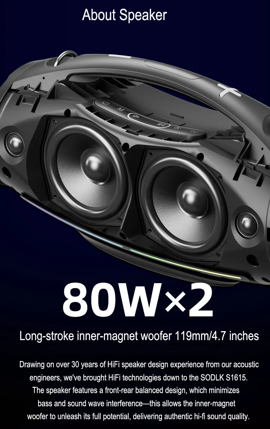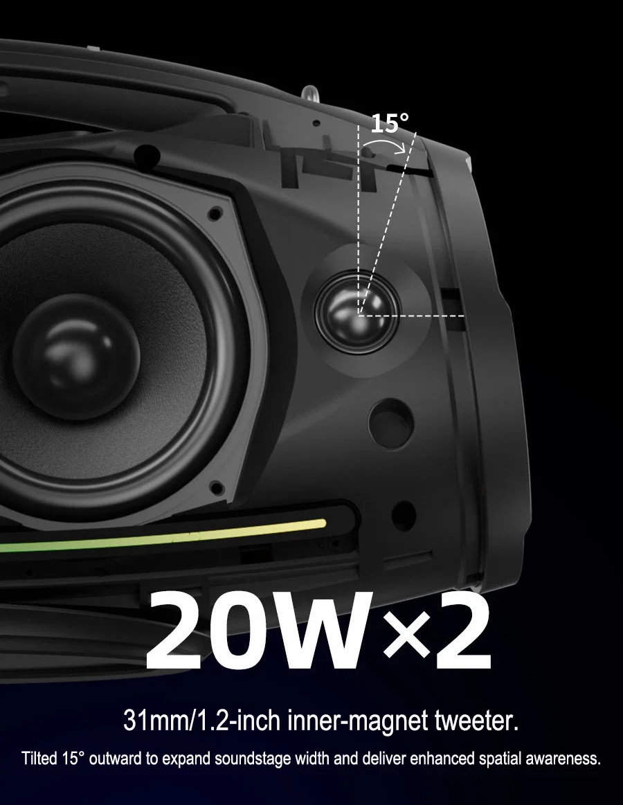 Altavoces internos de graves magnéticos de 80 W, 119 mm/4,7 pulgadas × 2