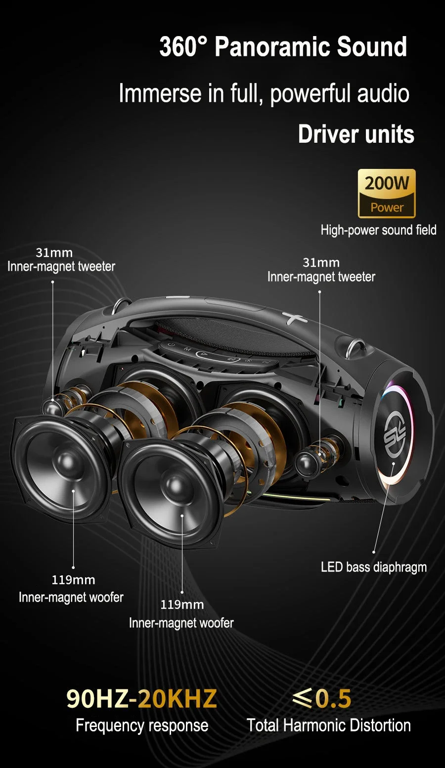 4 núcleos y 200 W, 4 unidades de producción de sonido