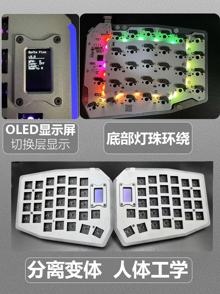 Kit de teclado dividido Sofle, pantalla OLED de intercambio en caliente con cable, Teclado ergonómico personalizado DIY, Teclado mecánico para juegos de deportes electrónicos de oficina VIA