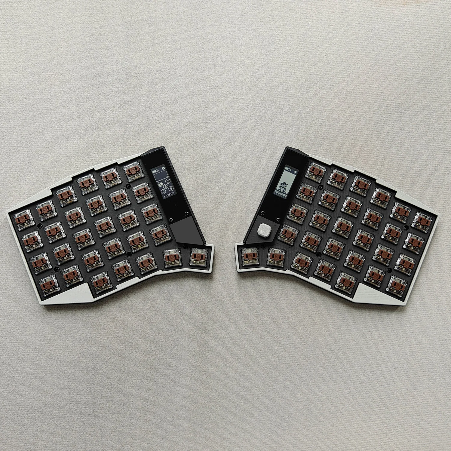 Este producto es un kit de teclado sin interruptor de eje, sin tapa de tecla y sin tapa de tecla personalizada con puerto C.Se espera que se coloque en las estanterías al final de febrero, con caracteres grabados, colores negro, blanco y transparente.Kit para firmware ZMK, y la tienda en la venta de la versión MX, utilidad corred, exactamente el mismo firmware, biblioteca.Modo dual Bluetooth/USB, admite muchos enlaces de dispositivos, se puede comprar por separado el receptor 2.4G.Se espera que el destinatario esté listo hasta el final de febrero.La carcasa negra es de fibra de carbono PLA y el blanco es PLA mate.