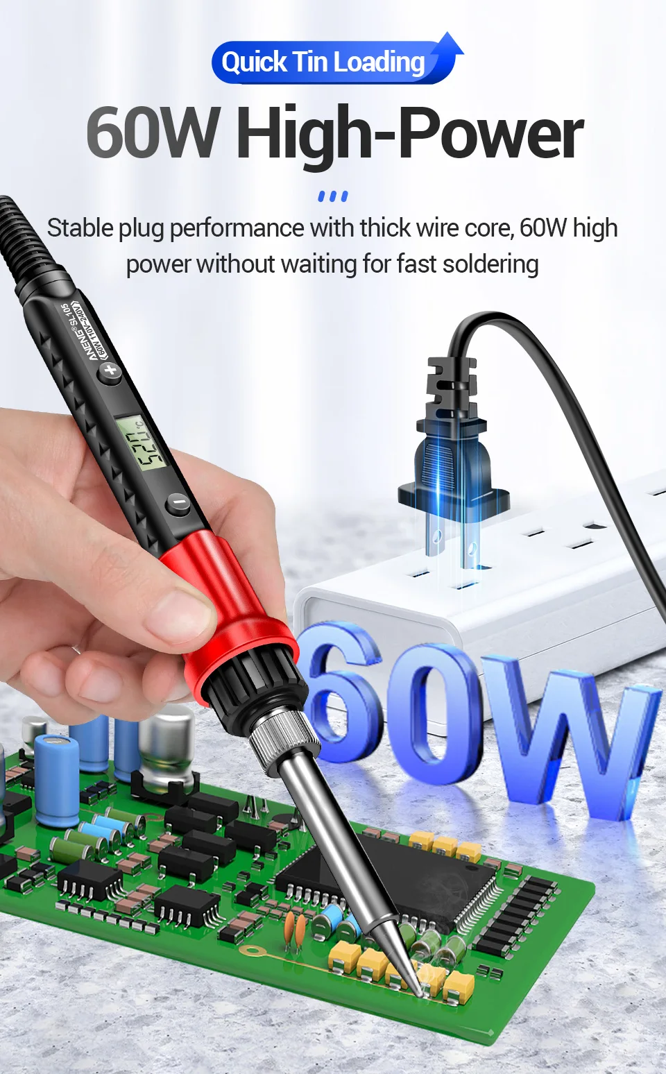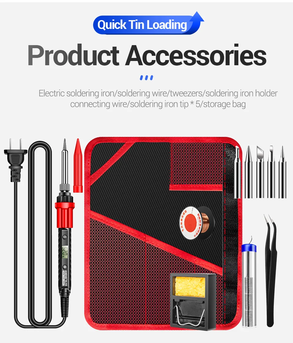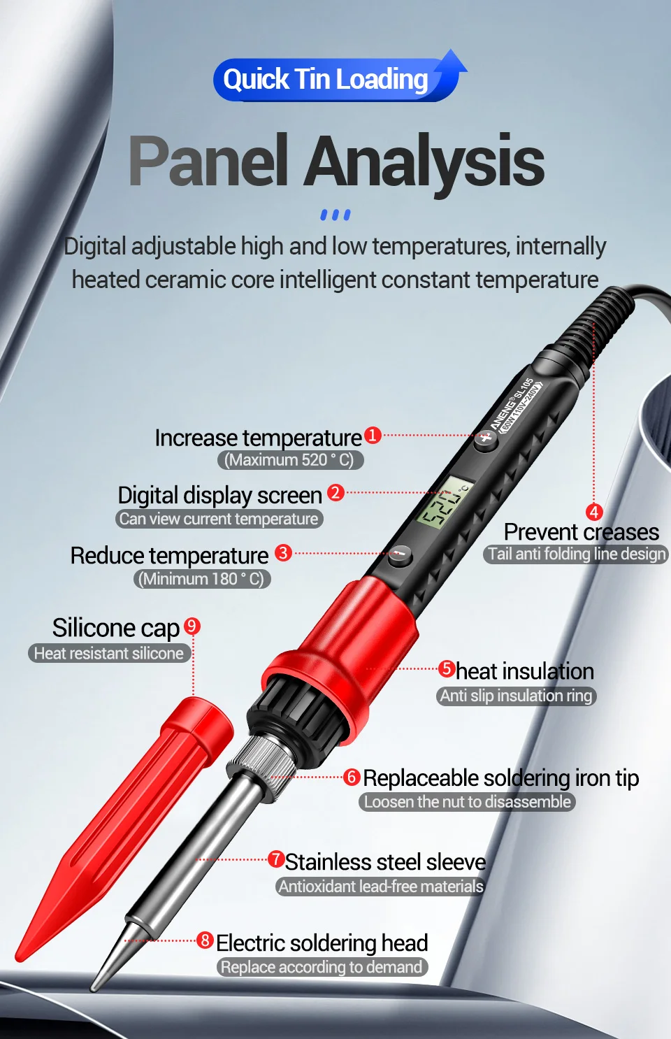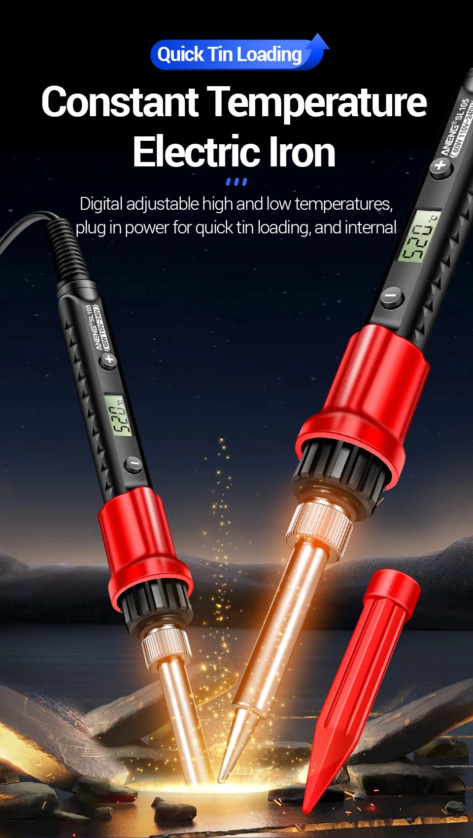Soldador eléctrico ANENG SL105, pantalla Digital LCD, temperatura ajustable, herramientas de puntas de soldadura de calentamiento rápido para electricista, 60W