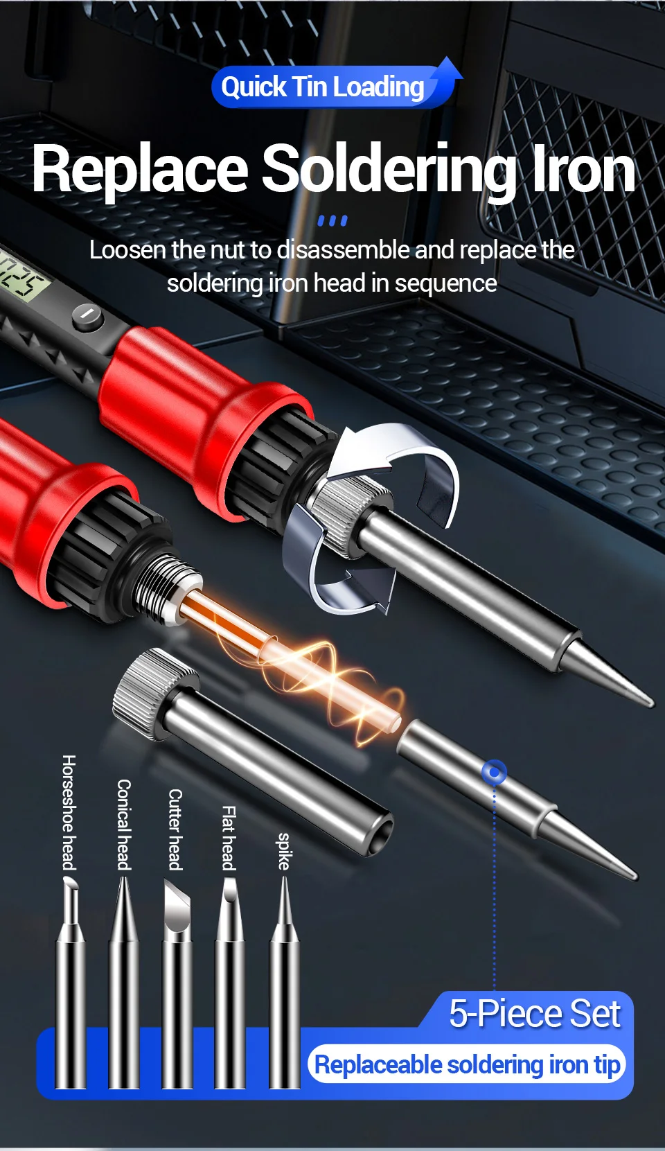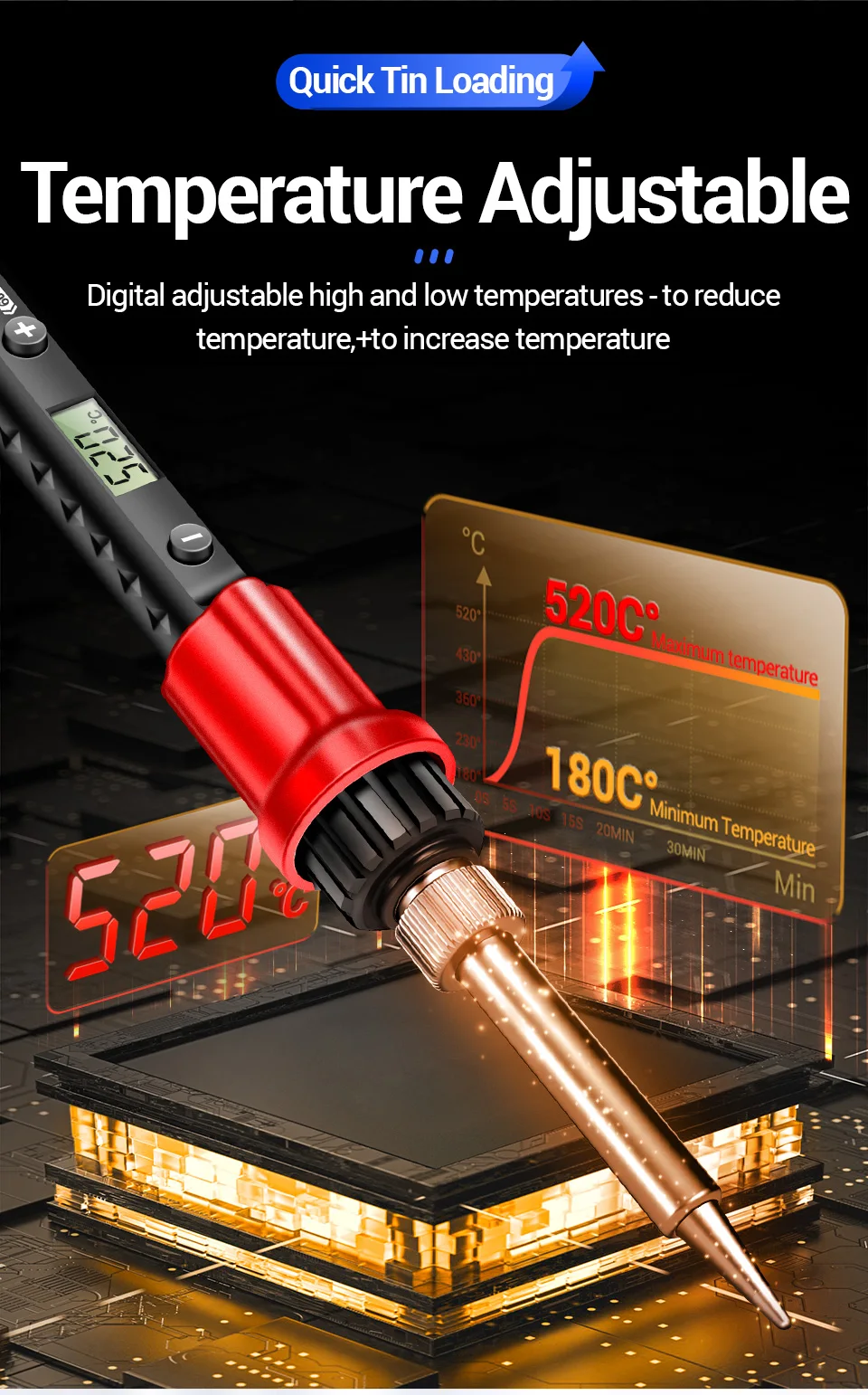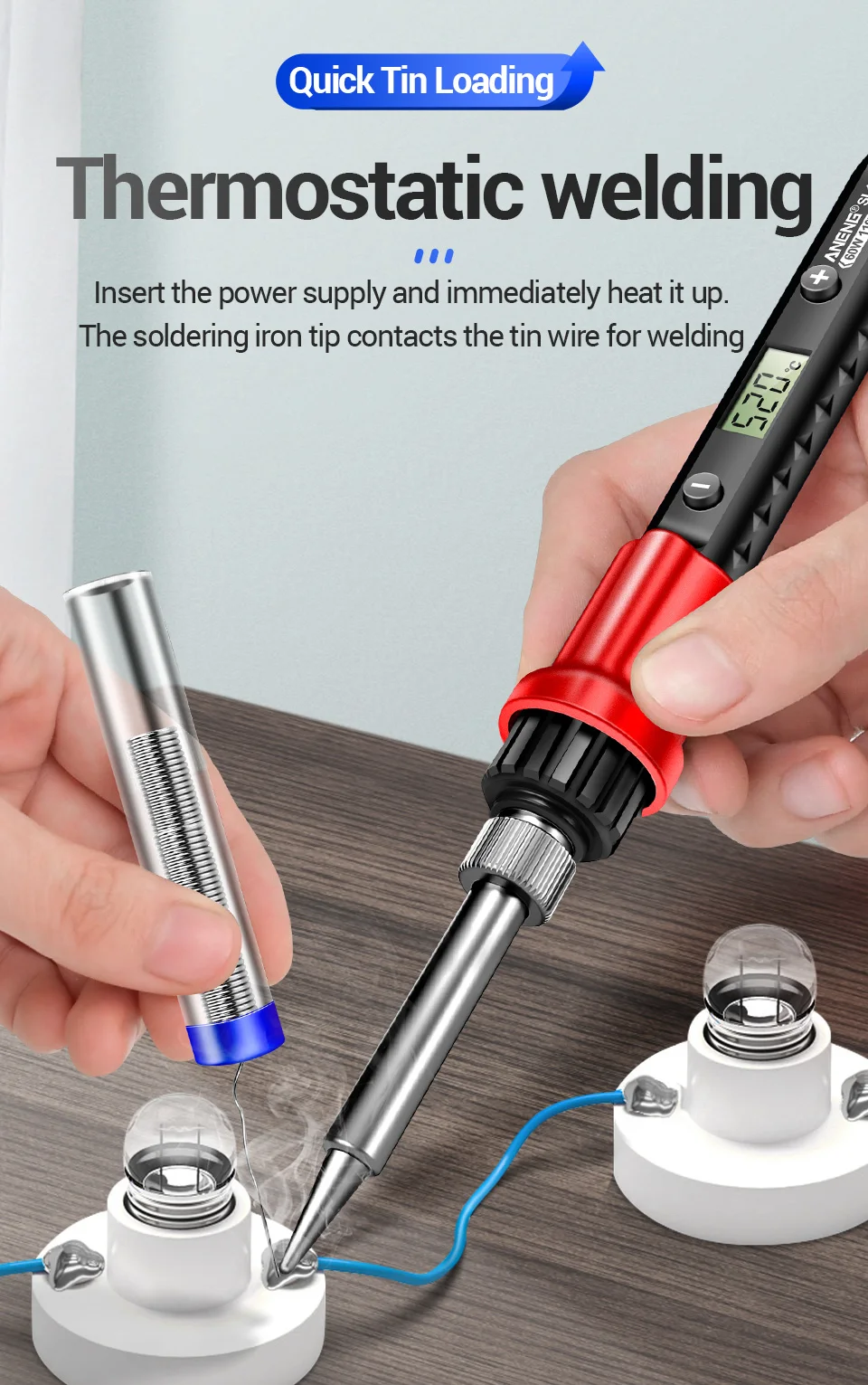 Soldador eléctrico ANENG SL105, pantalla Digital LCD, temperatura ajustable, herramientas de puntas de soldadura de calentamiento rápido para electricista, 60W