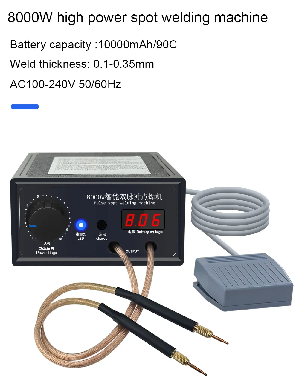 Máquina de soldadura por puntos inteligente de doble pulso de alta potencia de 8000W con batería recargable incorporada, buen rendimiento