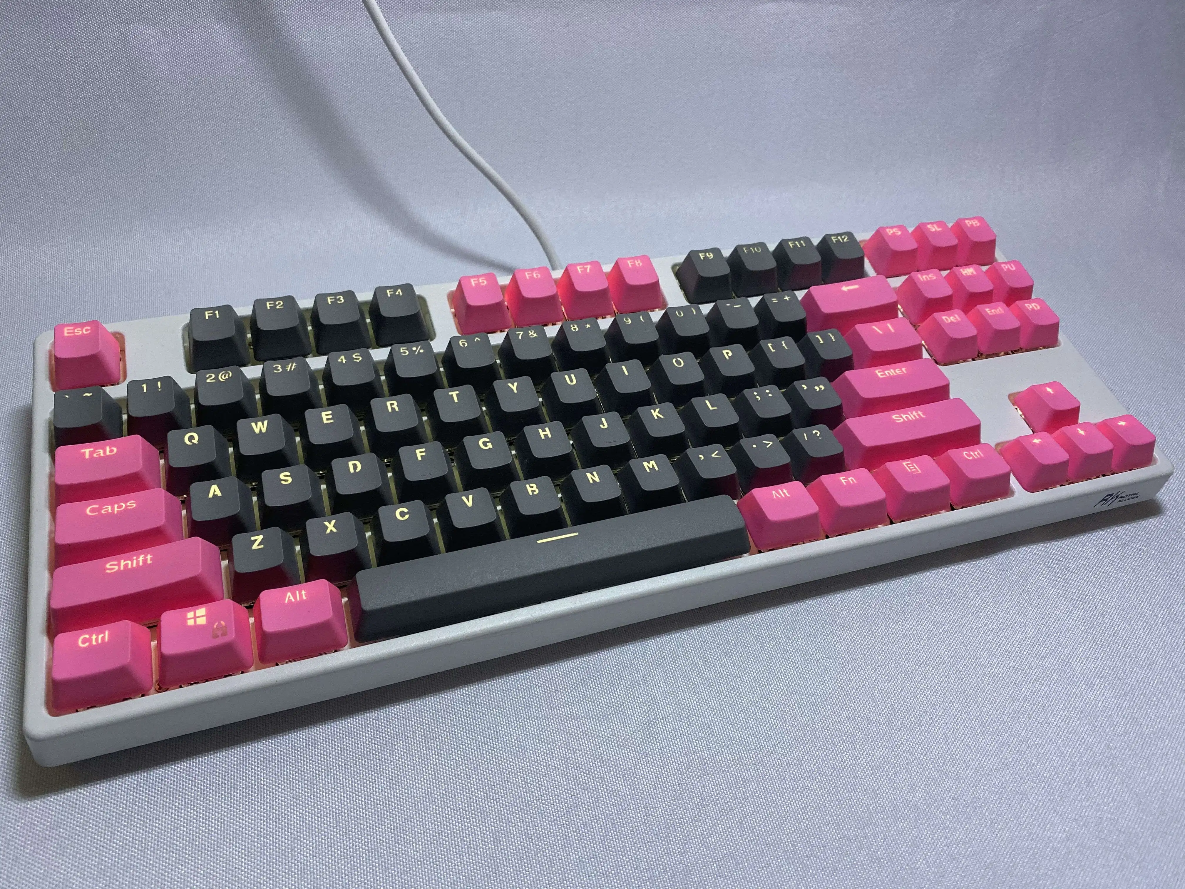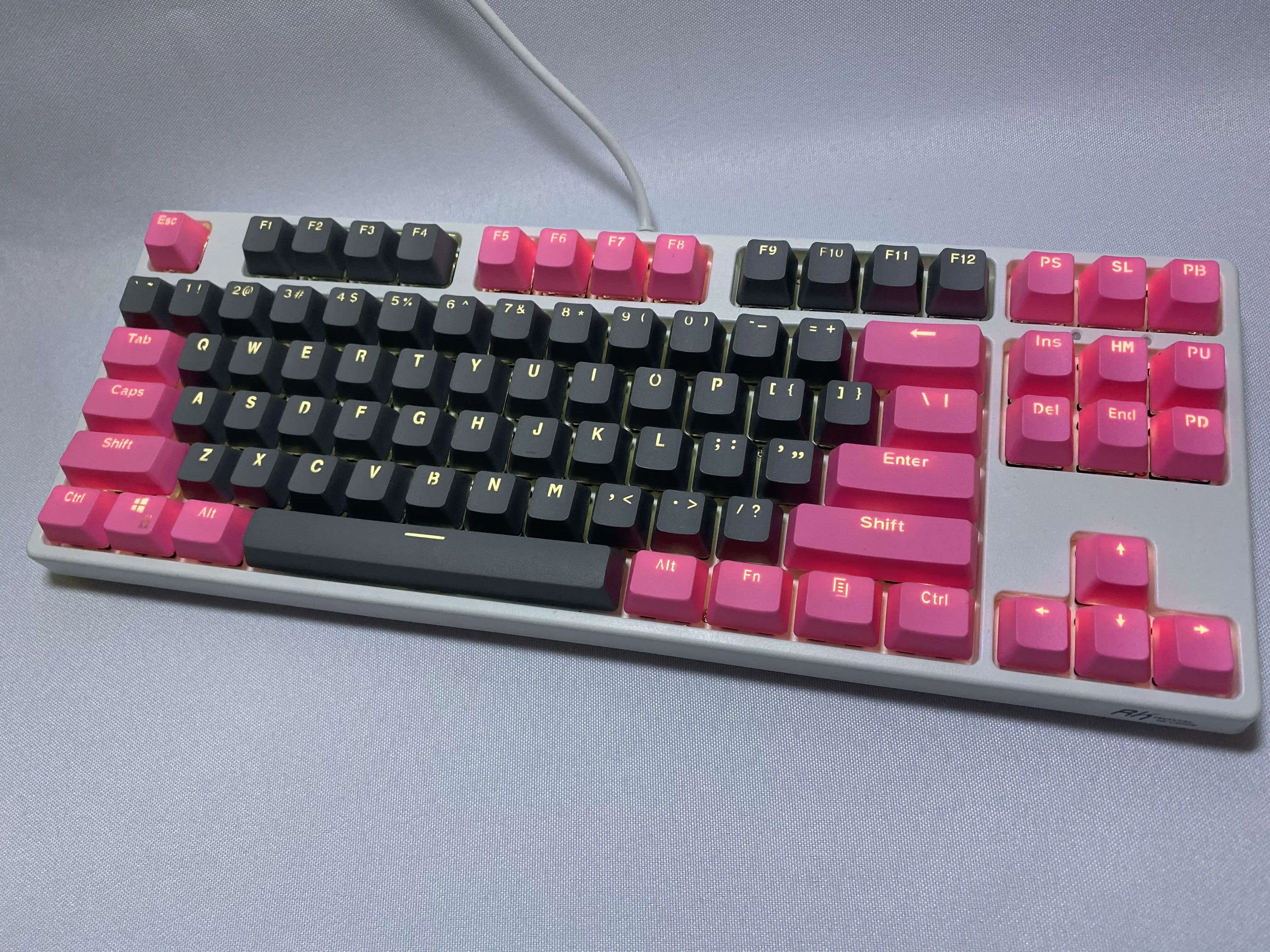 Comprar (Solo se venden teclas) Teclas RK 87 de color rosa y gris, material PBT, altura OEM, teclas de teclado mecánico para juegos de dos colores retroiluminadas