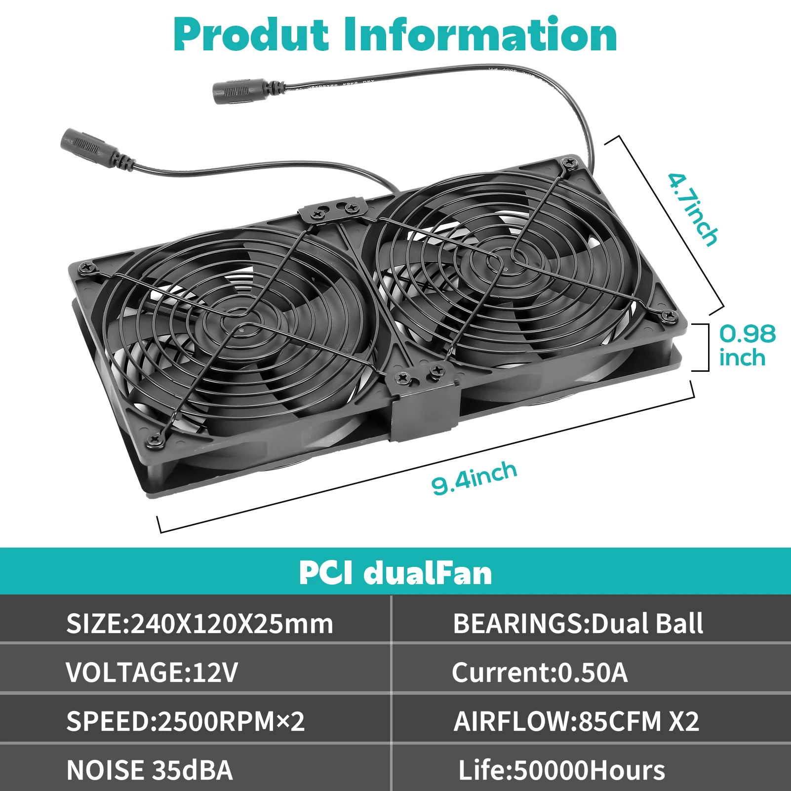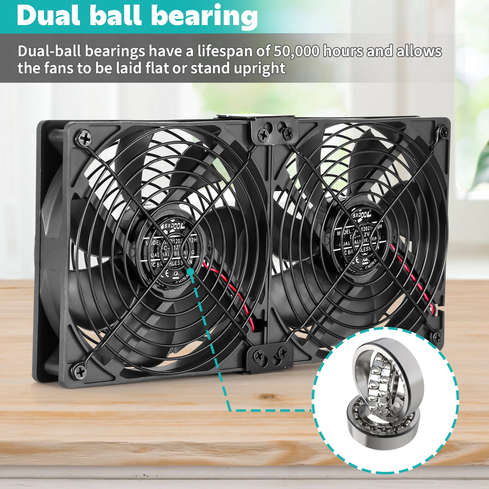 Comprar Solución de enfriamiento de plataforma de minería GPU con ventilador dual 2 en 1 de 120 mm con controlador de velocidad y rodamientos de bolas dobles Velocidad CFM de alto flujo de aire