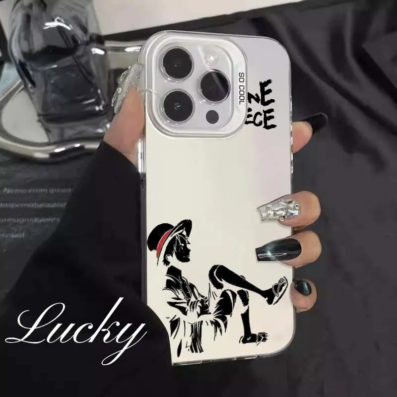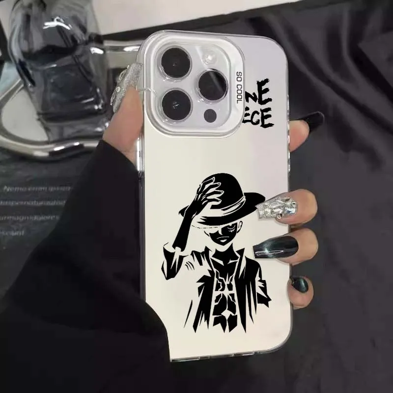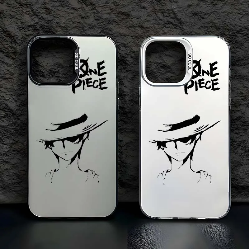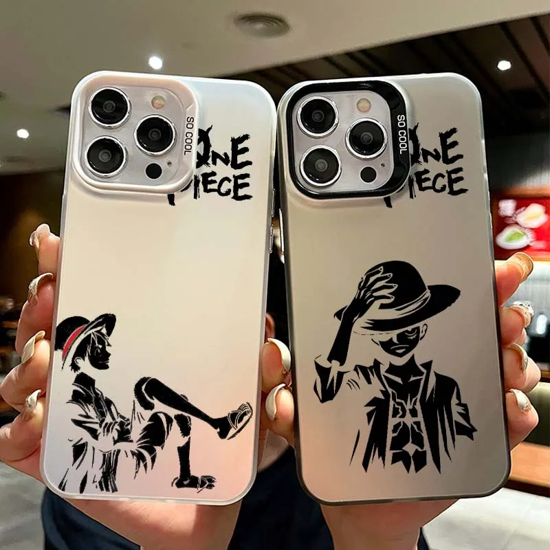 Comprar Sombrero de paja Luffy para Apple iPhone 16 15 14 13 12 11 Plus Pro Max cubierta de teléfono plateada de color mate
