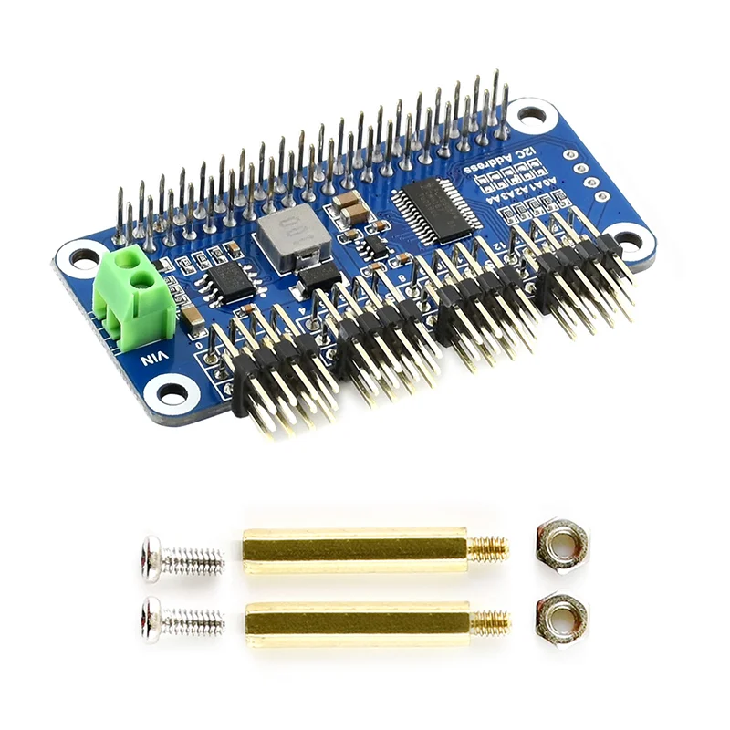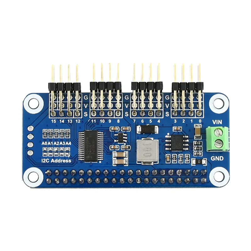 Comprar Sombrero de servocontrolador para Raspberry Pi, interfaz I2C de 16 canales y 12 bits, cabezal de Pin de ángulo recto para RPI 5, 4B, 3B + Zero