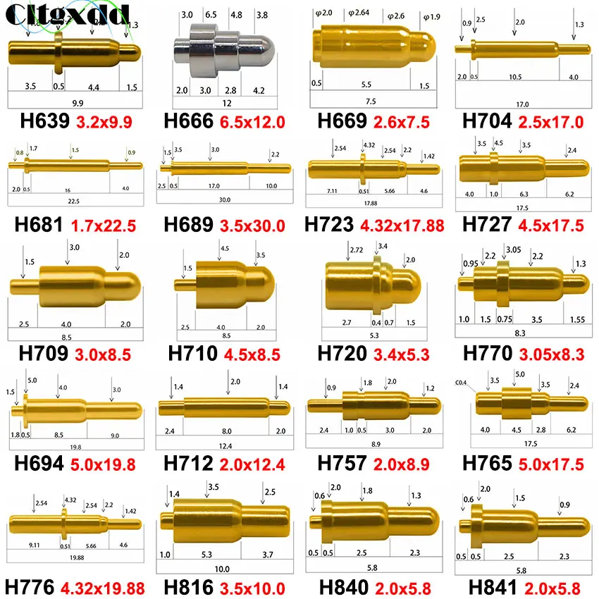 Sonda de prueba de resorte PCB de alta corriente, aguja conductora de señal de Pogopin, conector de contacto de cobre Pogo, 1 piezas, 2A, 3A, 4A, 5A, 6A, 7A, 20A