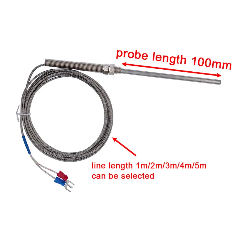 Comprar Sonda termopar tipo K de 100mm, sensor termopar de acero inoxidable de 1m, 2m, 3m, 4m, 5m, cable de 0-400 ℃
