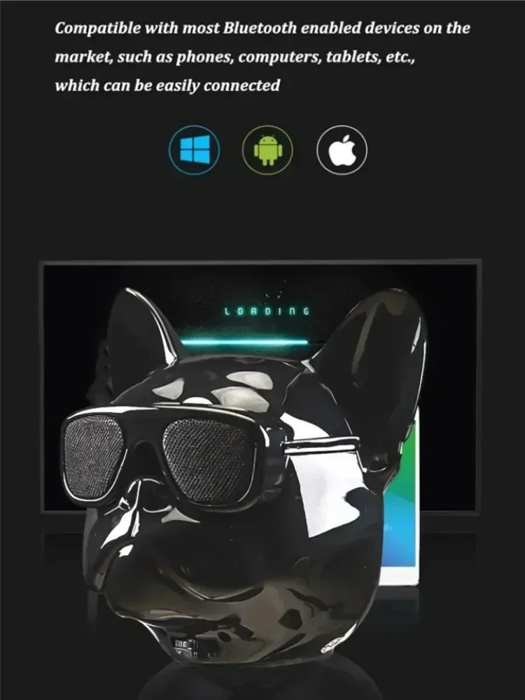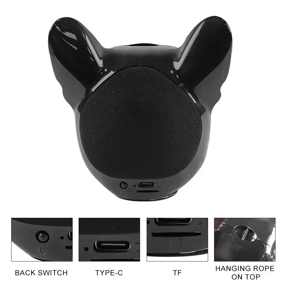 Function:Bluetooth 5.0 :Enjoy seamless connectivity with the latest Bluetooth 5.0 technology, ensuring stable and fast transmission of audio signals. Portable Design :Take your music anywhere with this lightweight and compact speaker, perfect for outdoor activities or on-the-go use. Creative French Bulldog Design :Add a touch of fun and personality to your audio experience with the unique French Bulldog design, sure to stand out from the crowd. Extra Bass Mode :Enhance your listening experience with the extra bass mode, delivering powerful and immersive sound quality.