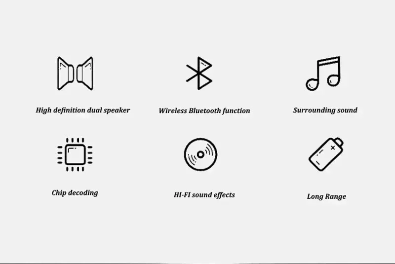 Noted:Avoid high temperature and direct sunlight, stay away from water. Make sure that the audio does not have any obstacles within 10 meters, such as walls or equipment. Clean regularly, remove dust with soft brush.
