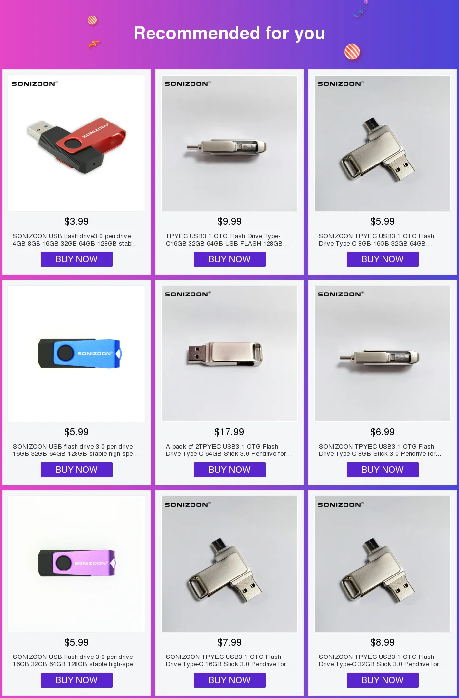 Comprar SONIZOON-unidad flash USB 3,0, 16GB, 32GB, 64GB, 128GB, disco U personalizado azul de alta velocidad, estable, envío gratis