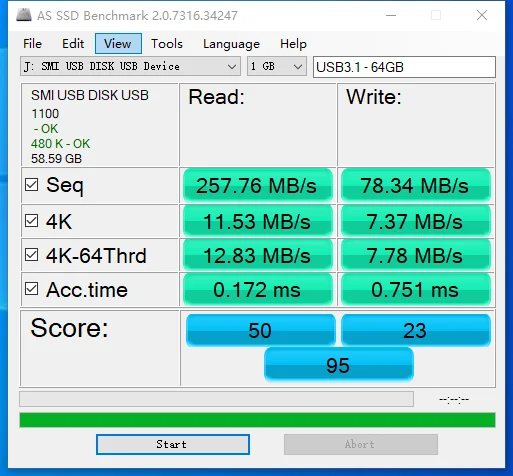 Estamos en la prueba de interfaz del sistema WIN10 USB3.0, diferentes sistemas, diferentes ordenadores, los resultados de la prueba serán diferentes, pero tendremos la garantía de velocidad mínima:.