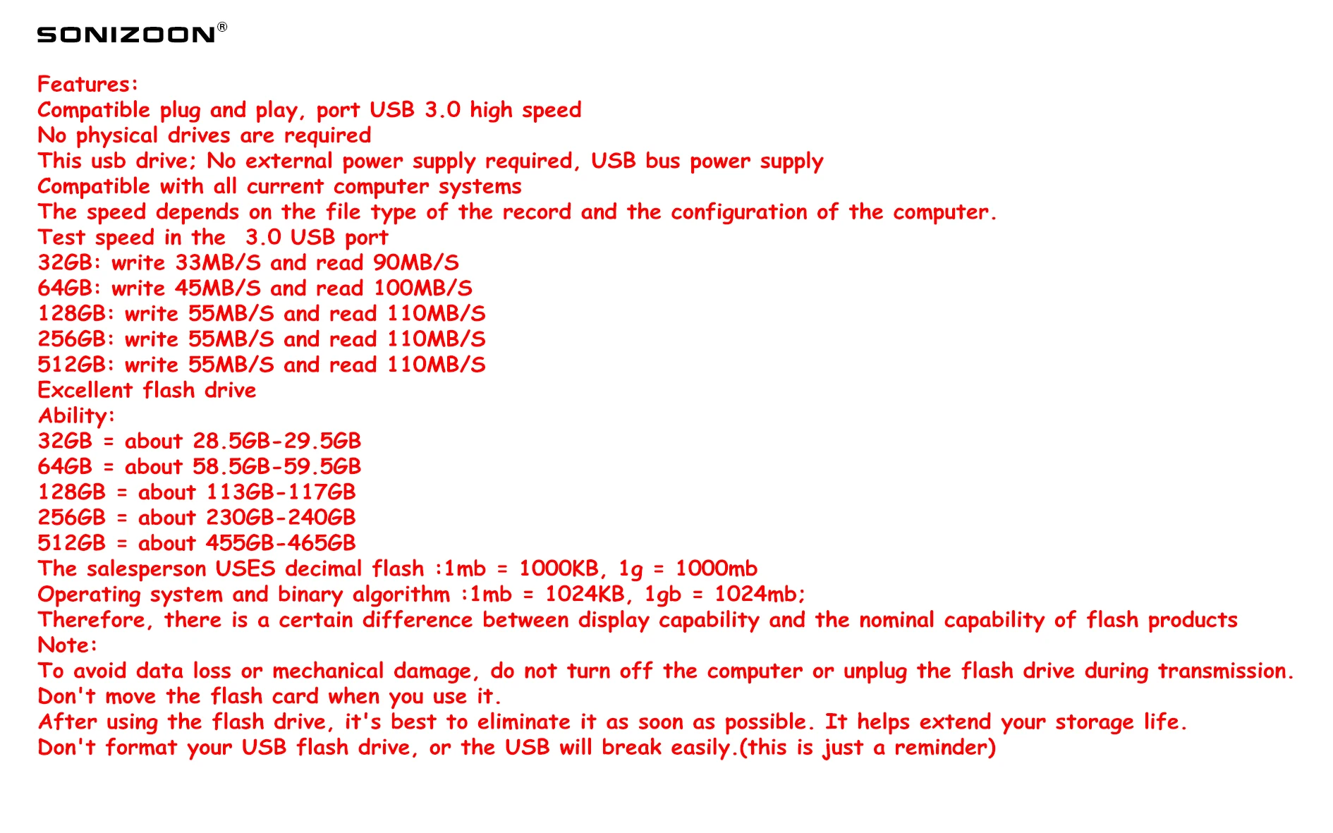 Comprar SONIZOON-unidad Flash USB 3,1 de alta velocidad, Pen Drive de 32GB, 64GB, 128GB, 256GB, se envía el Adaptador tipo C