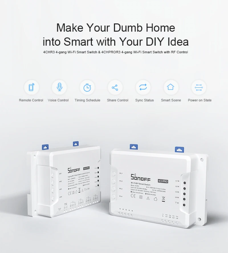 SONOFF 4CH R3/ Pro R3 Wifi Smart Switch EWeLink-Control remoto para Smart Home compatible con Control de voz que funciona con Alexa Google Home