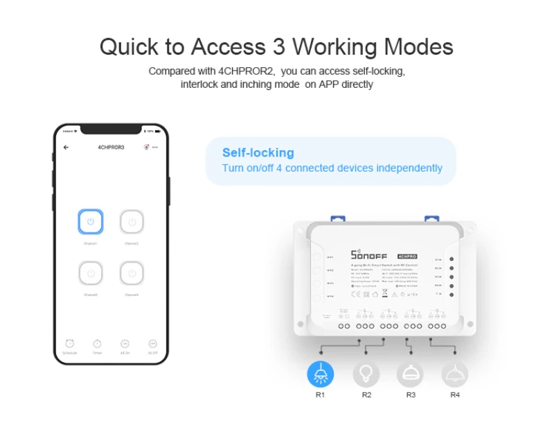 SONOFF 4CH R3/ Pro R3 EWeLink Wifi interruptor inteligente APP Control remoto interruptor de luz compatible con Control de voz funciona con Alexa Google