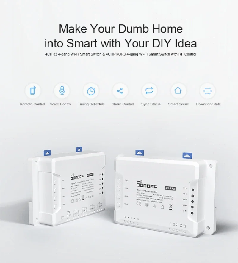 SONOFF 4CH R3/ Pro R3 Wifi Smart Switch EWeLink-Control remoto para Smart Home compatible con Control de voz que funciona con Alexa Google Home