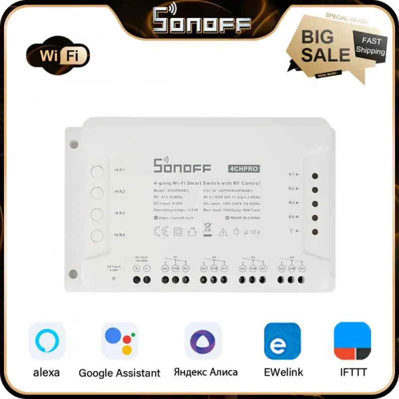 Comprar SONOFF 4CH R3/Pro R3 Wifi interruptor inteligente EWeLink-Control remoto para soporte de hogar inteligente Control de voz funciona con Alexa Google Home