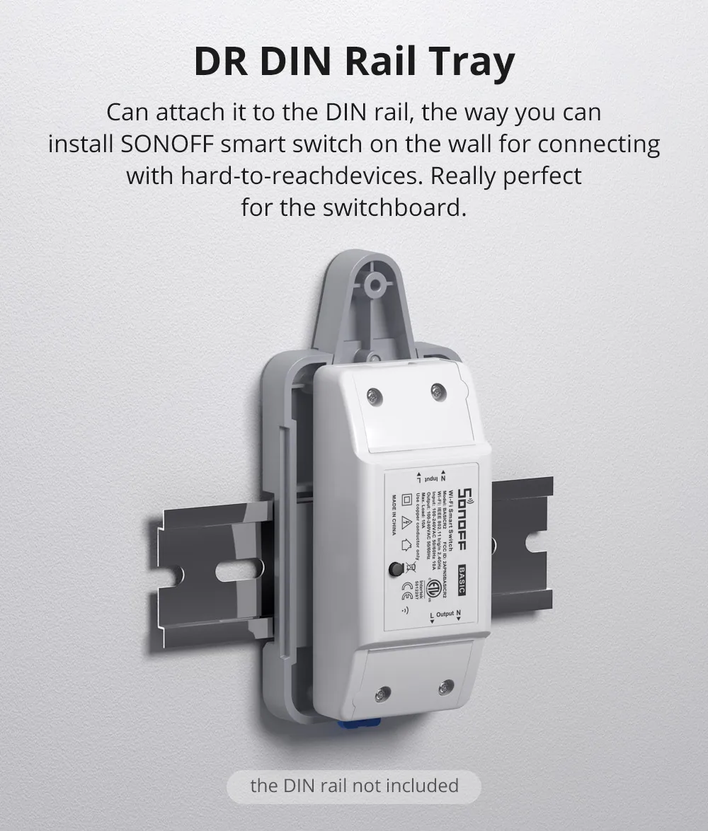 As you know, most of the SONOFF products are not DIN rail mounted, which makes it difficult to put the Sonoff products into the switchboard. Now we launch another inexpensive and practical accessory - SONOFF DR - DIN Rail Tray. We provide this product just to let our users easily install the Sonoff switches to their switchboard.