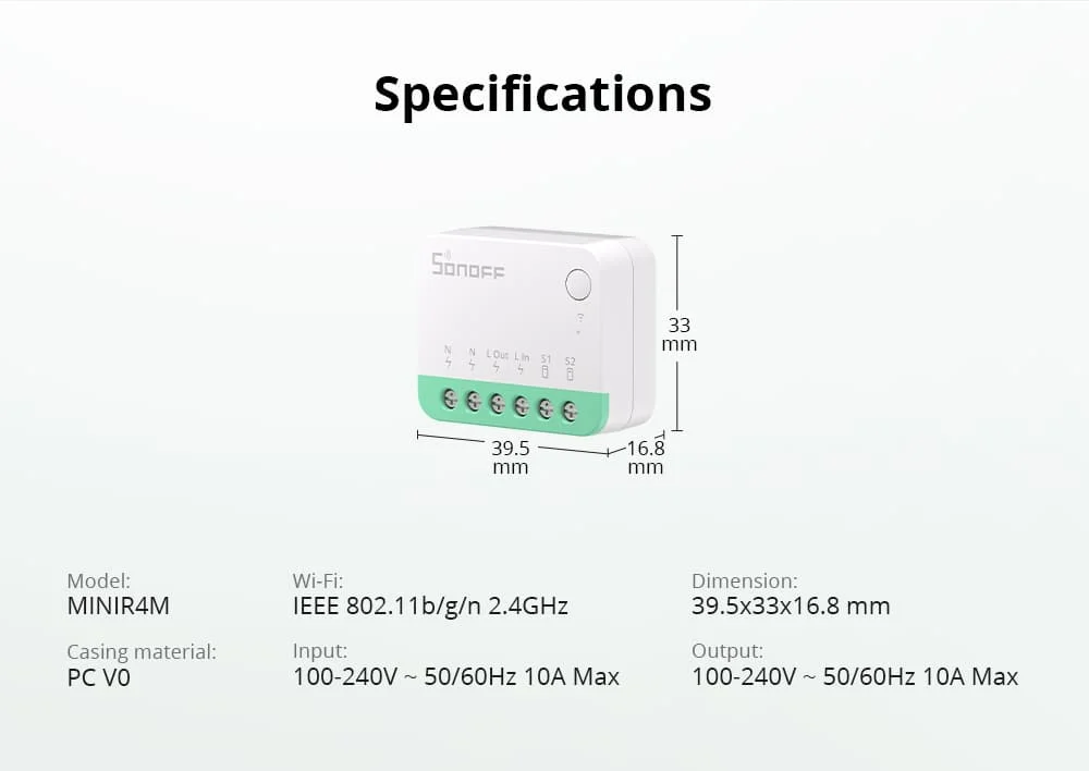 SONOFF MINIR4M Matter Extreme Wi-Fi Mini interruptor inteligente Control bidireccional Automatización del hogar inteligente a través de Alexa Google Alice Smartthings