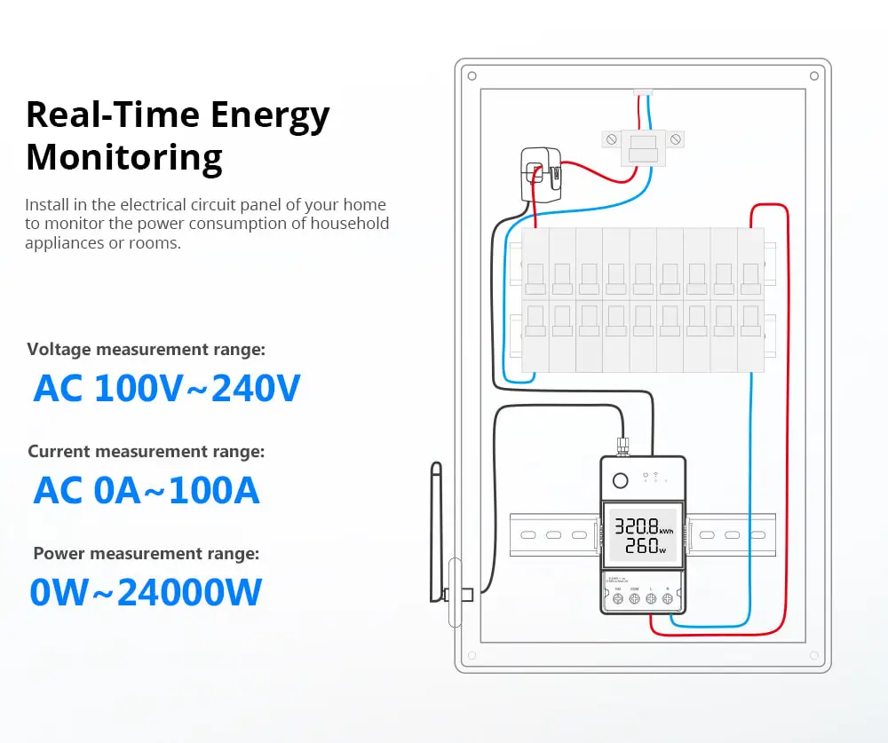 【Monitor de energía】 Instálelo en el panel de circuito eléctrico de su hogar para monitorear el consumo de energía de los electrodomésticos o habitaciones.