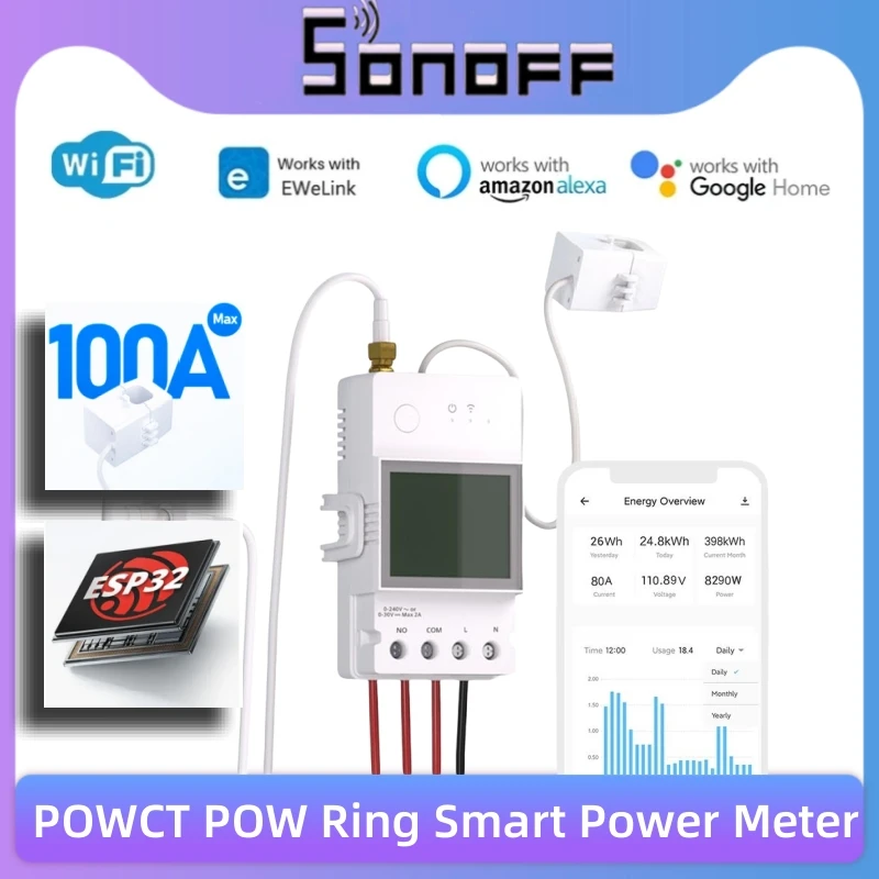 SONOFF-Anillo POWCT, medidor de potencia inteligente, Monitor de energía, soporte, Control de Contactor, aplicación EweLink, Control remoto, VIa, Alexa, Google Home