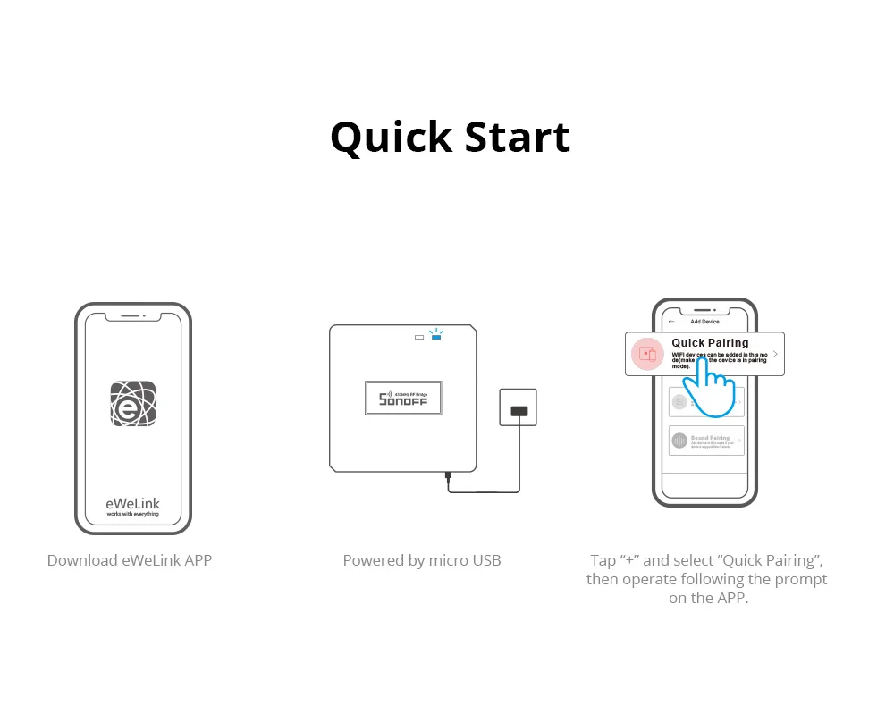 【Fuerte conectividad, posibilidad ilimitada】El puente admite la adición de dispositivos RF 433MHz hasta 64 que SONOFF ha lanzado, como el sensor de movimiento PIR3-RF PIR y el sensor inalámbrico de puerta/ventana DW2-RF, lo que hace que su hogar sea más inteligente.