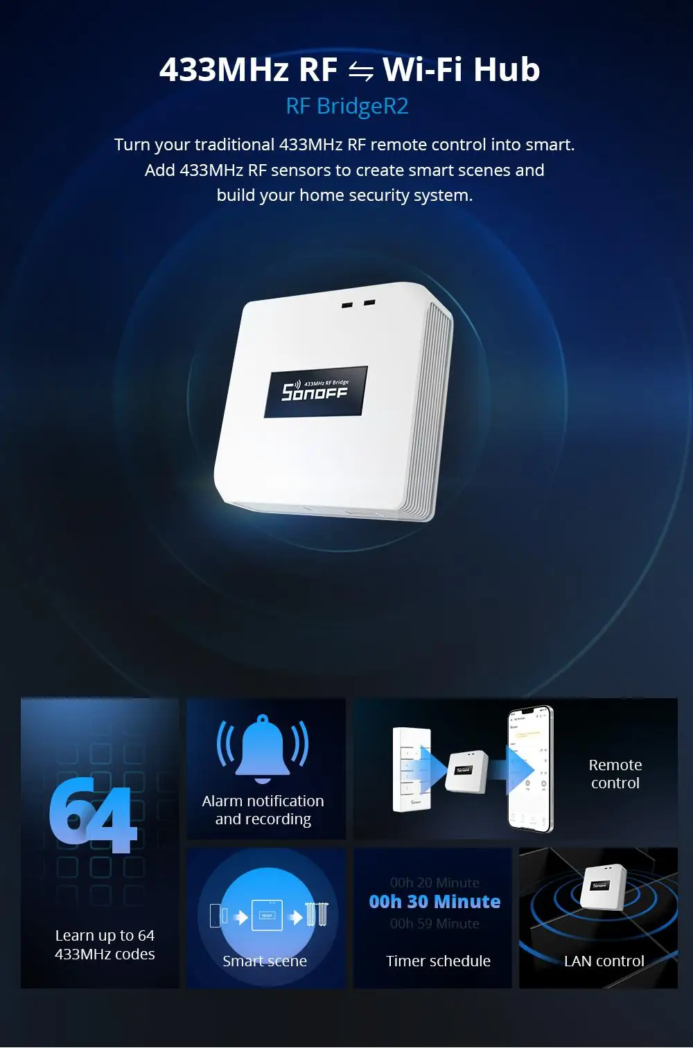 【RF433MHz y soporte de protocolo Wi-Fi】Ayude a los dispositivos RF de 433MHz a comunicarse con dispositivos WiFi y extienda el ecosistema de hogar inteligente.