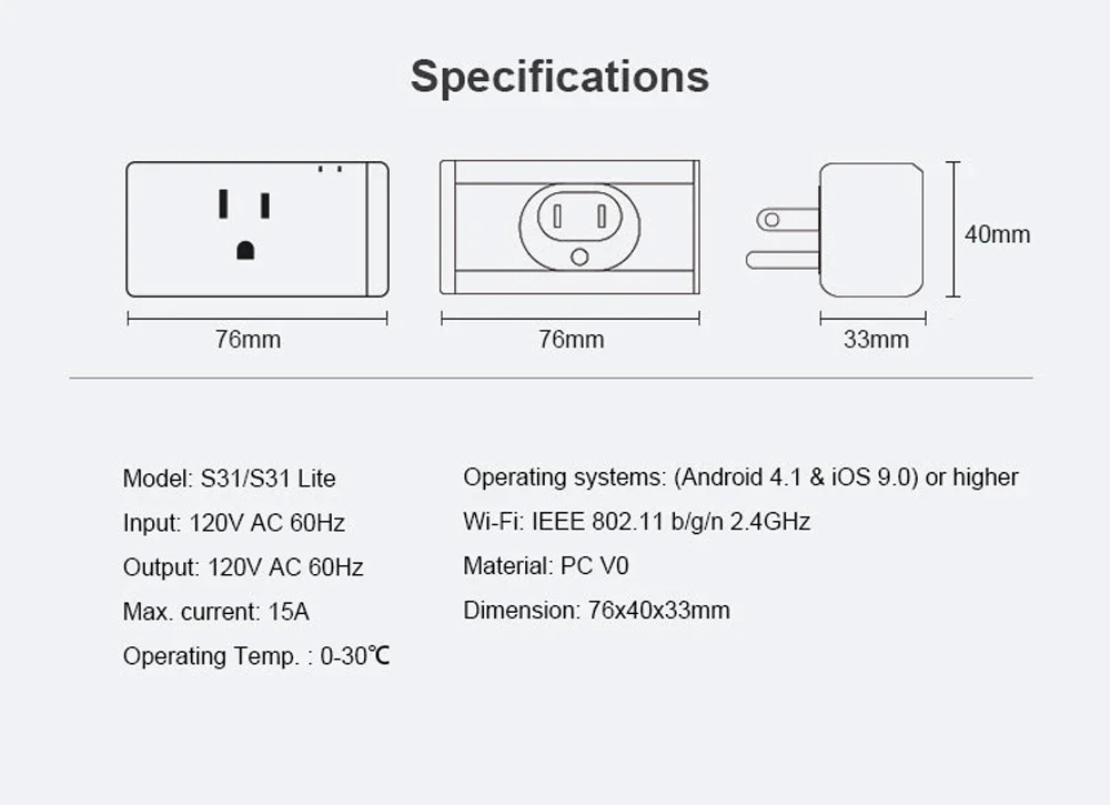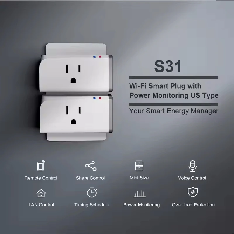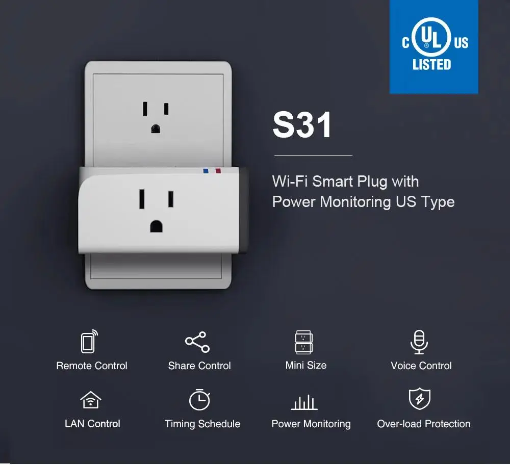 SONOFF S31 US 15A Mini WiFi enchufe inteligente con monitoreo de energía Control remoto y sincronización Control de voz funciona con Alexa Google Home