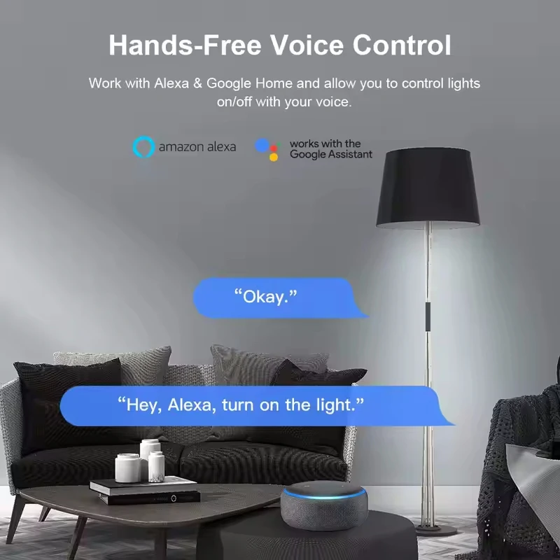 Funciona con Amazon Alexa y Google Home Assistant para realizar control de voz manos libres para dispositivos