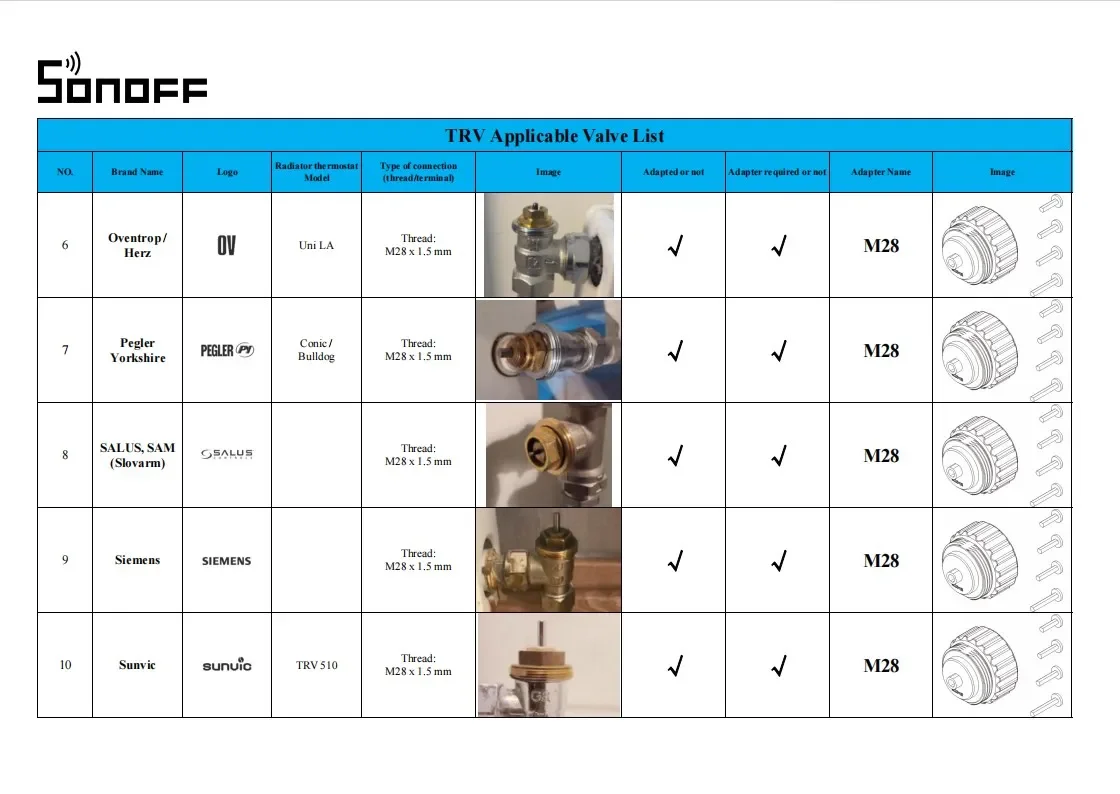 Note : Thermostatic Radiator Valve needs to be used with Zigbee Hub.Such as SONOFF Zigbee Thermostratic Radiator Valve support SONOFF NSPanel Pro, ZB Bridge Pro, and ZBDongle-E,
