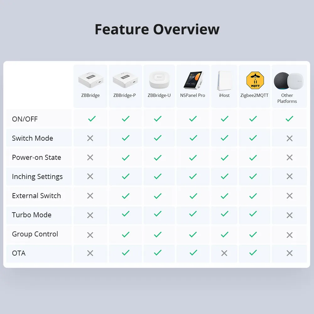 Basado en el protocolo estándar Zigbee 3.0, ZBMINIR2 se integra perfectamente con plataformas de código abierto de terceros, como Home Assistant, Zigbee2MQT (se requiere Zigbee Dongle, p.SONOFF ZBDongle-P/ZBDongle-E) lo que lo hace perfecto para sus necesidades de automatización del hogar.