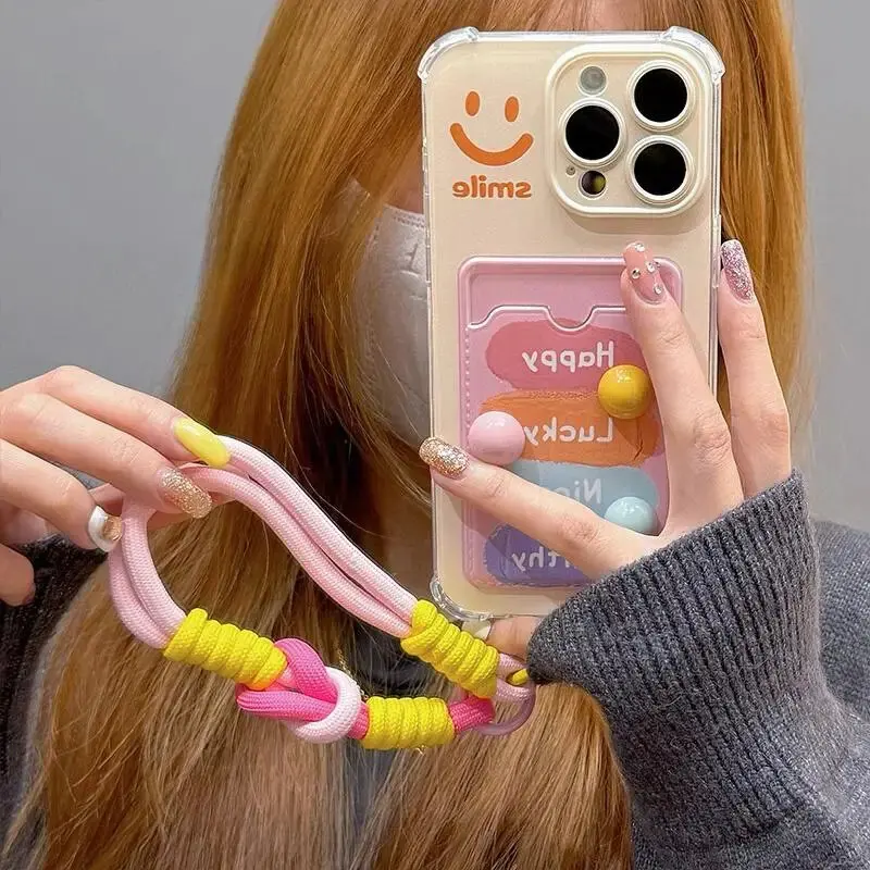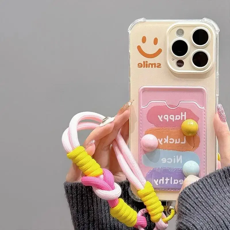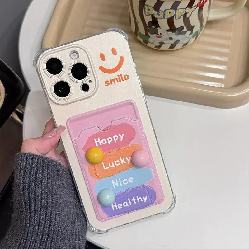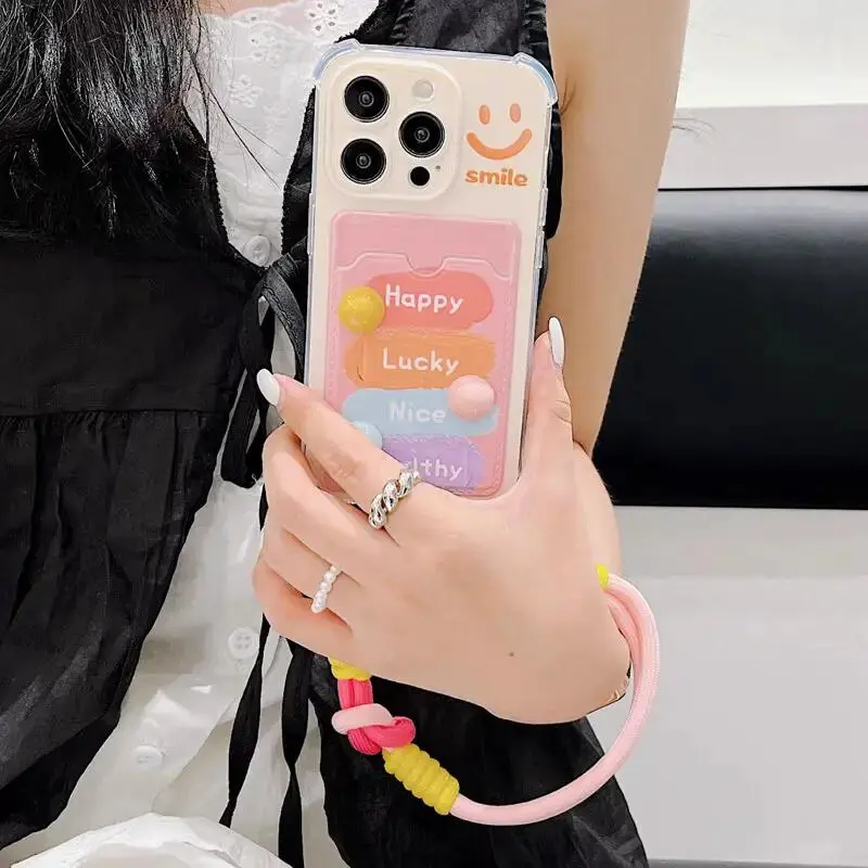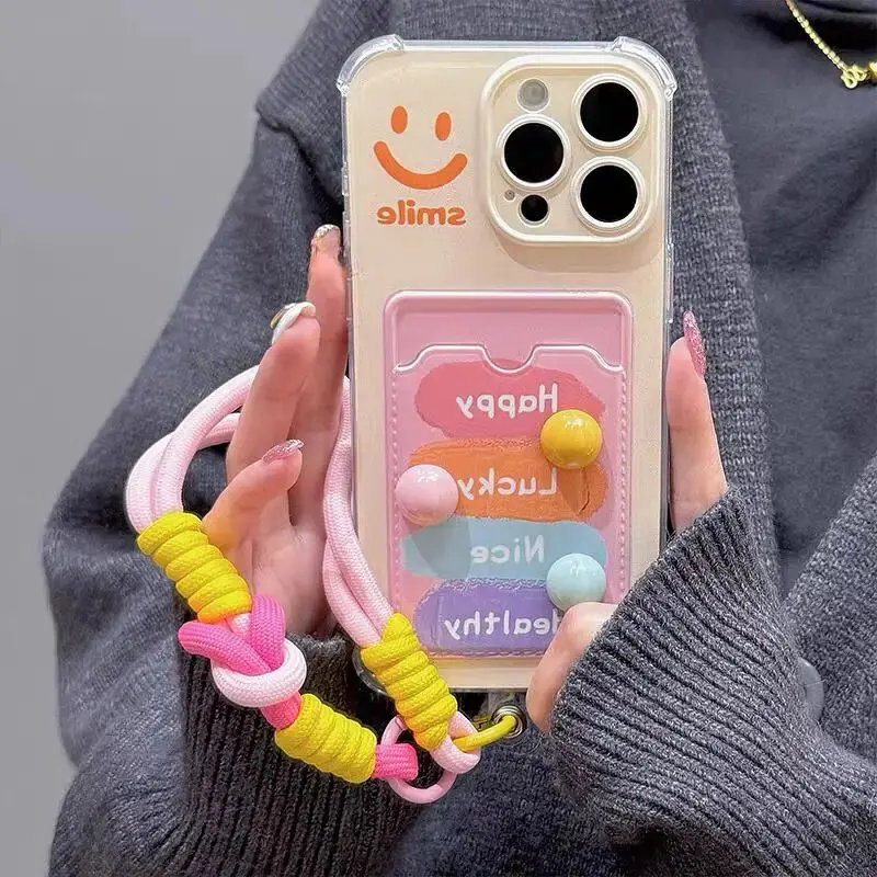 Comprar Sonrisa 3D bolsa de tarjeta de frijoles de caramelo funda colgante para Samsung Galaxy S24 Ultra S22 S23 Plus S20 S21 FE A55 5G A54 A53 A52 A35 A23 A24 A33