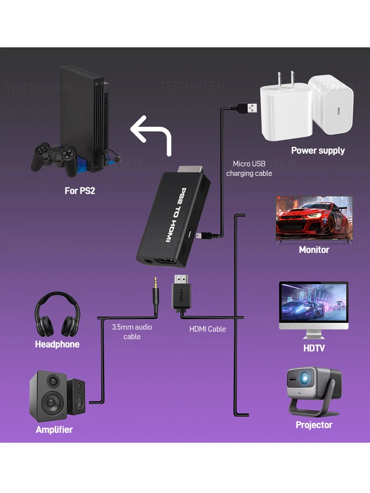 No se necesitan controladores.Simplemente conecte el convertidor entre su PS2 y la pantalla, sin necesidad de controladores complejos, el convertidor garantiza una instalación sencilla para una experiencia de juego perfecta.