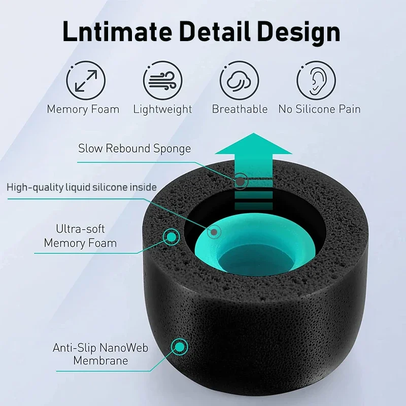 Puntas de Espuma Viscoelástica para Auriculares, Tapones de Repuesto para Reducción de Ruido, Tapones para los Oídos, Tapones para los Oídos, Tapas de Agarre