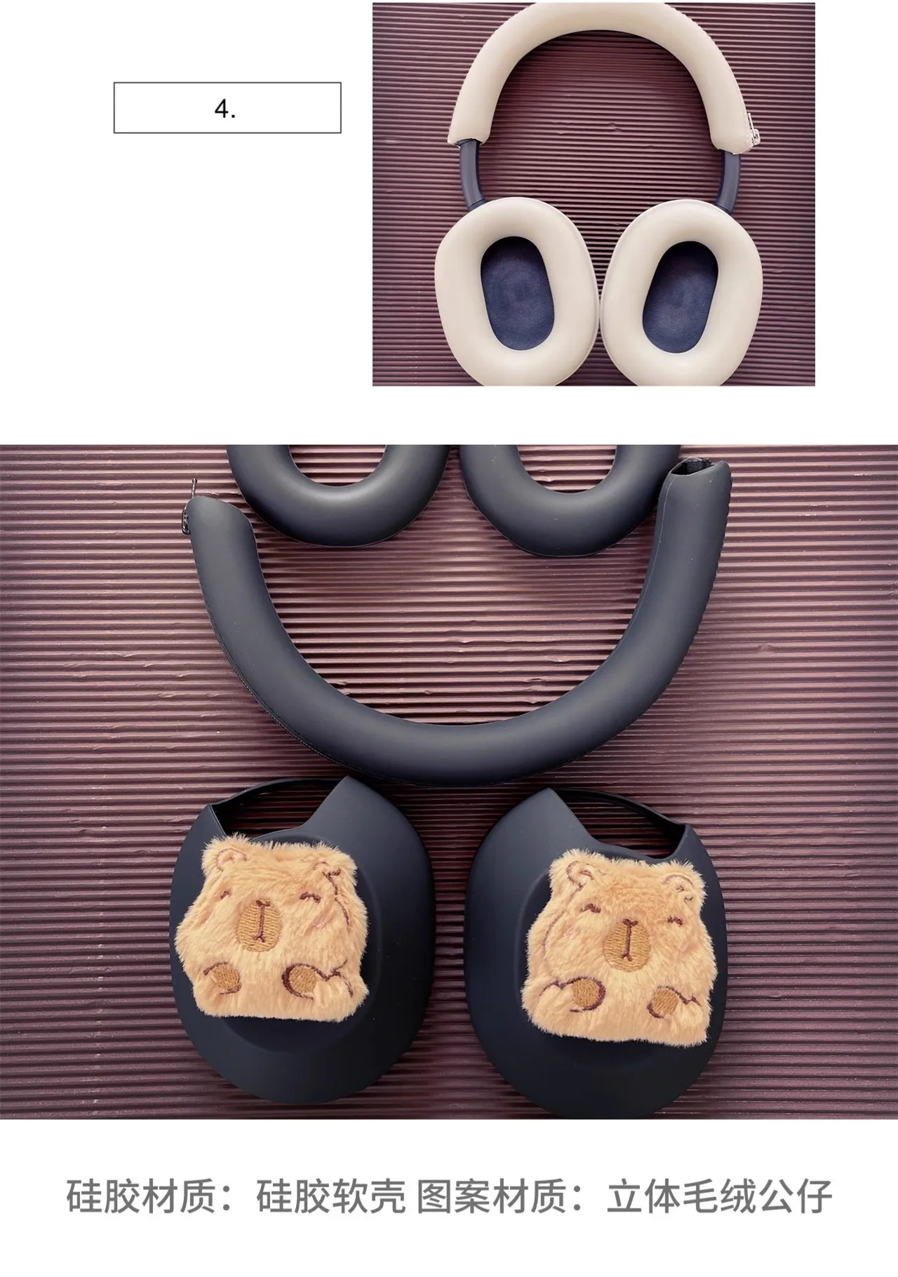 Funda para auriculares Sony WH-1000xm4/xm5, Capybara personalizada, bonita funda para auriculares, cubierta de haz de cabeza de silicona, orejeras decorativas, accesorio
