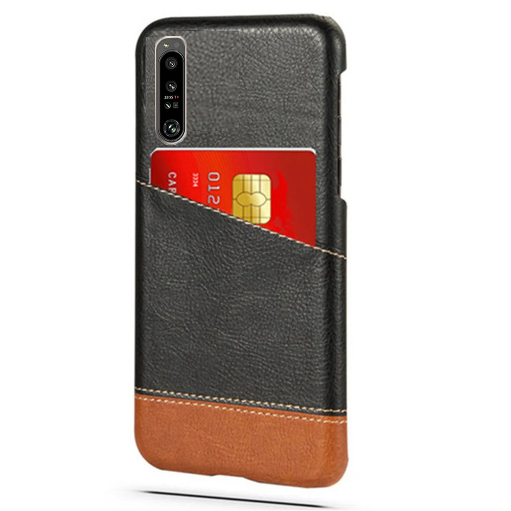 Funda para Sony Xperia 1 IV / 10 IV empalme mixto PU cuero titular de la tarjeta de crédito cubierta para Sony Xperia 1 IV / 10 IV Funda trasera Coque