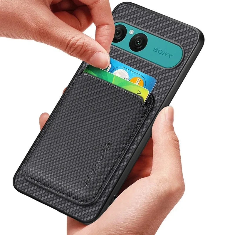 Para Sony Xperia 10 VII funda Magsafe cartera tarjetero cubierta para Sony Xperia 10 V II 10vii ranura para tarjeta magnética cubierta de fibra de carbono