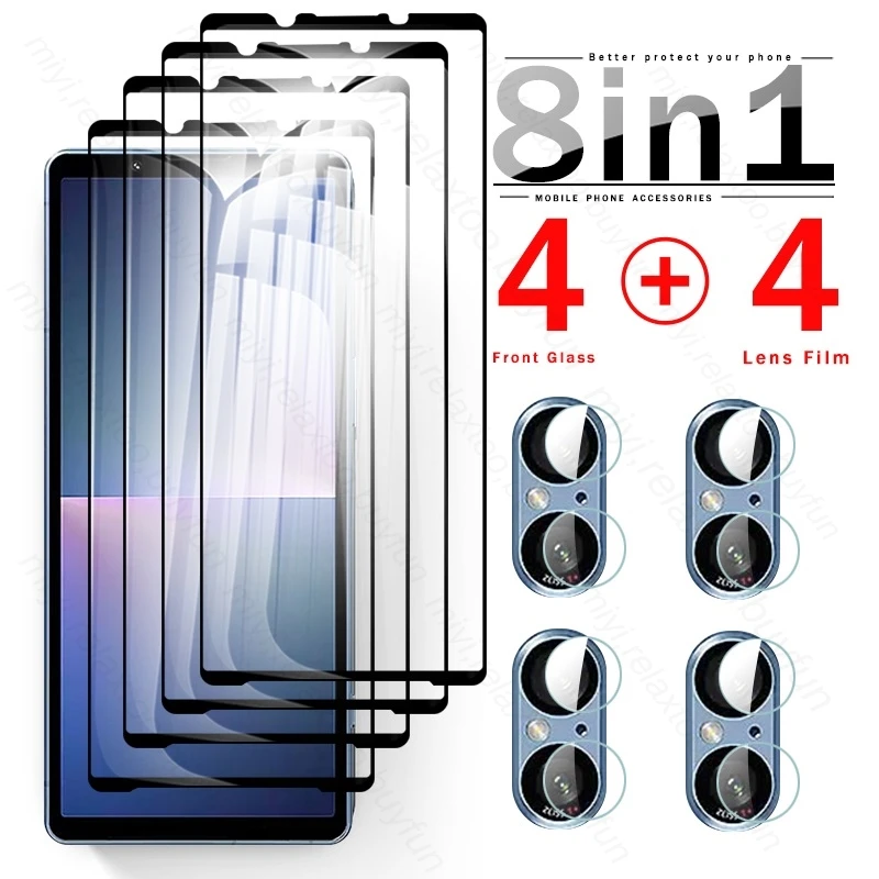 Para Sony Xperia 5 V 5G Glass 8 en 1 Cámara Vidrio protector Xperia5 V Xperia5V 6,1 "9H Premium Protector de pantalla Película de vidrio templado Cubierta protectora