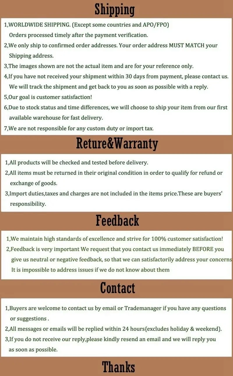 **Deje la información de la dirección completa; de lo contrario, su paquete tal vez regrese finalmente.