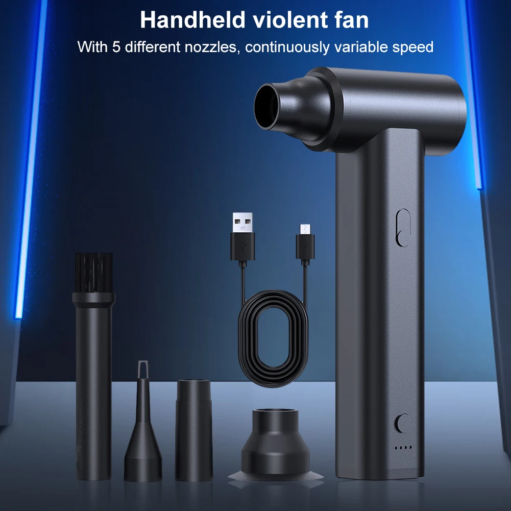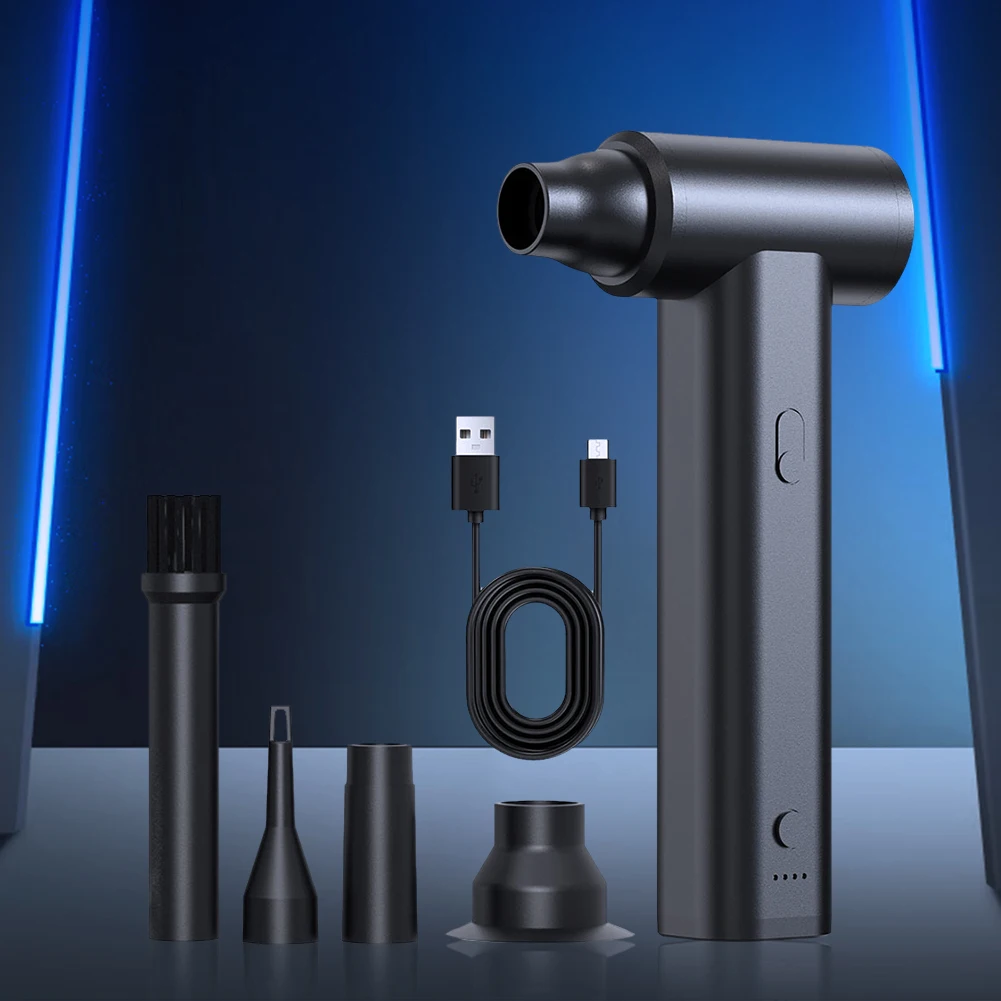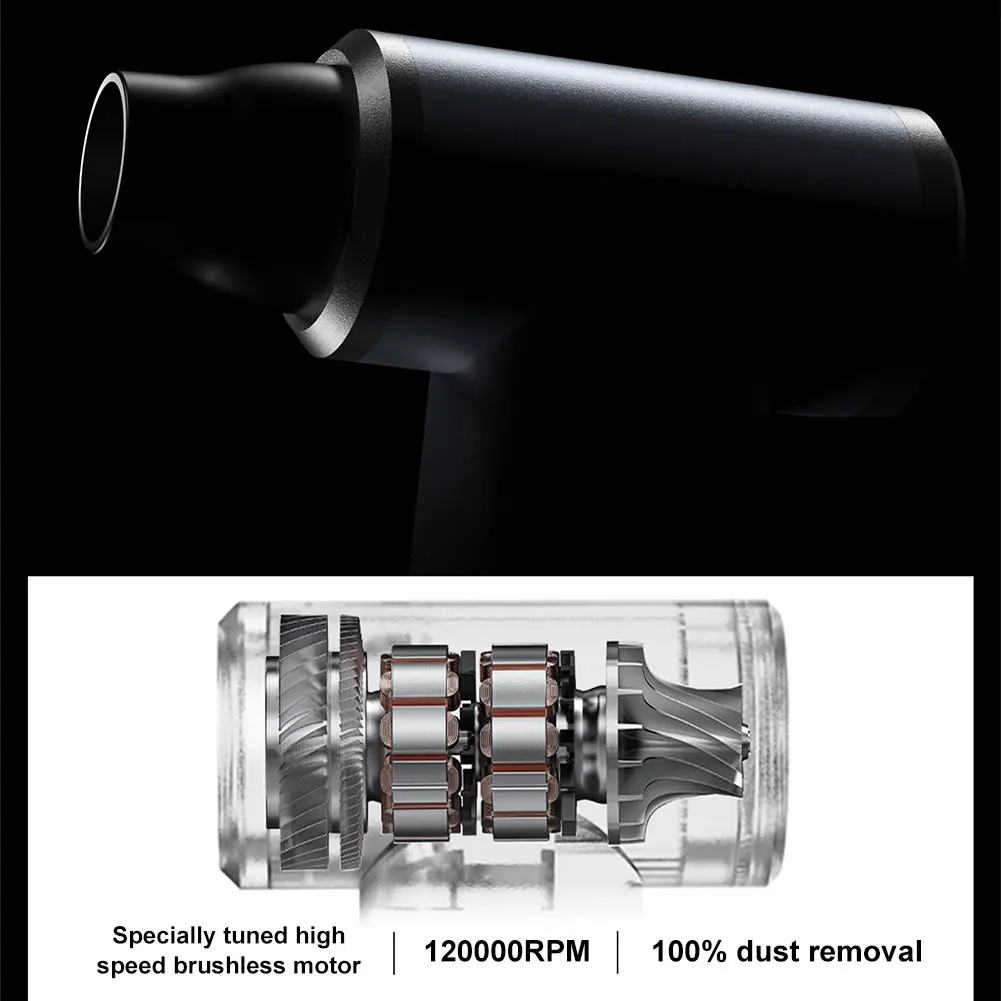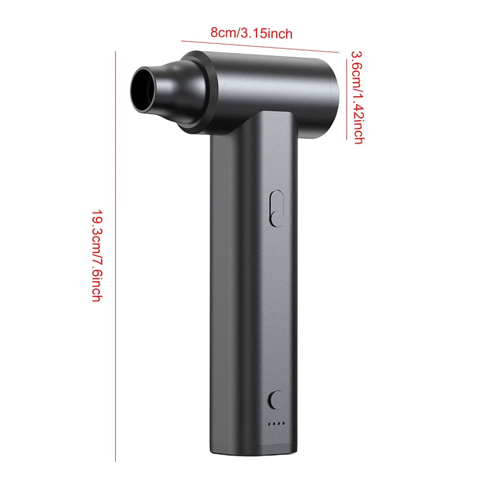 1.Rendimiento de alta velocidad:El plumero de aire comprimido cuenta con un motor sin escobillas hecho de aleación de aluminio de primera calidad, que ofrece velocidades de hasta 120,000 RPM.Elimina eficazmente el pelo, el polvo y las partículas de arena ocultas en los coches, asientos o sofás con este potente mini ventilador turbo.