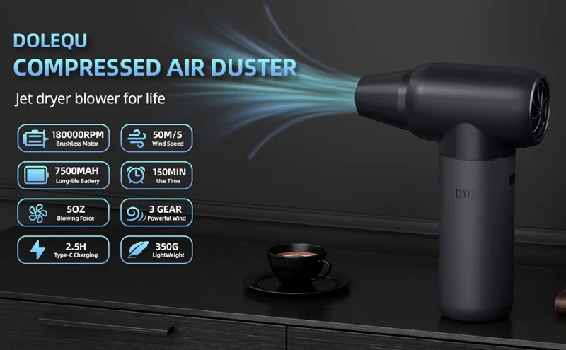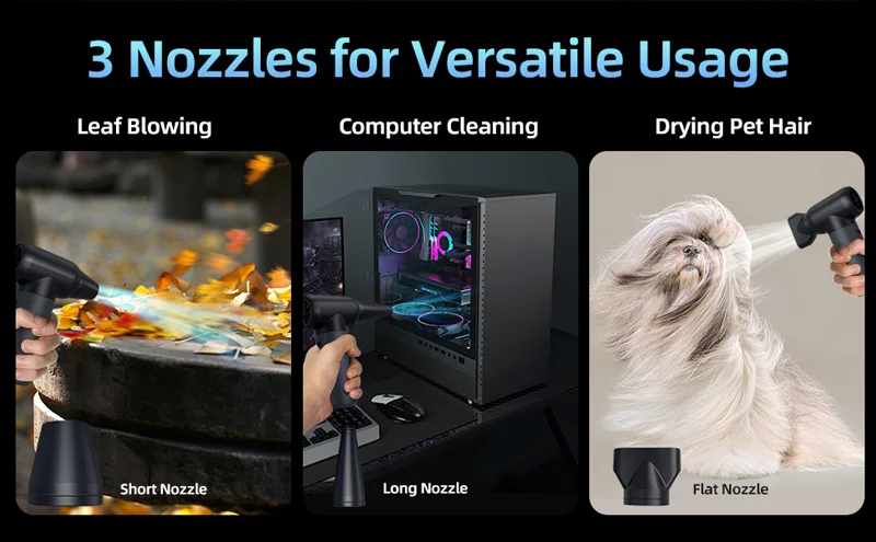 Soplador Turo de chorro de 180000 RPM, 50M/S, 3 velocidades de viento, batería integrada, plumero de aire Turofan para coche, Camping, ordenador, limpieza, soplado de nieve