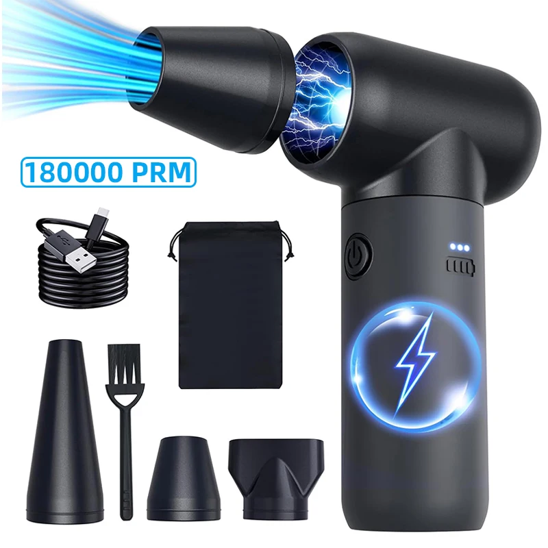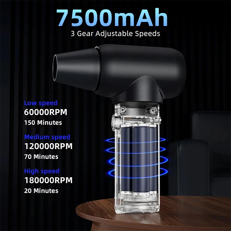 Soplador Turo de chorro de 180000 RPM, 50M/S, 3 velocidades de viento, batería integrada, plumero de aire Turofan para coche, Camping, ordenador, limpieza, soplado de nieve